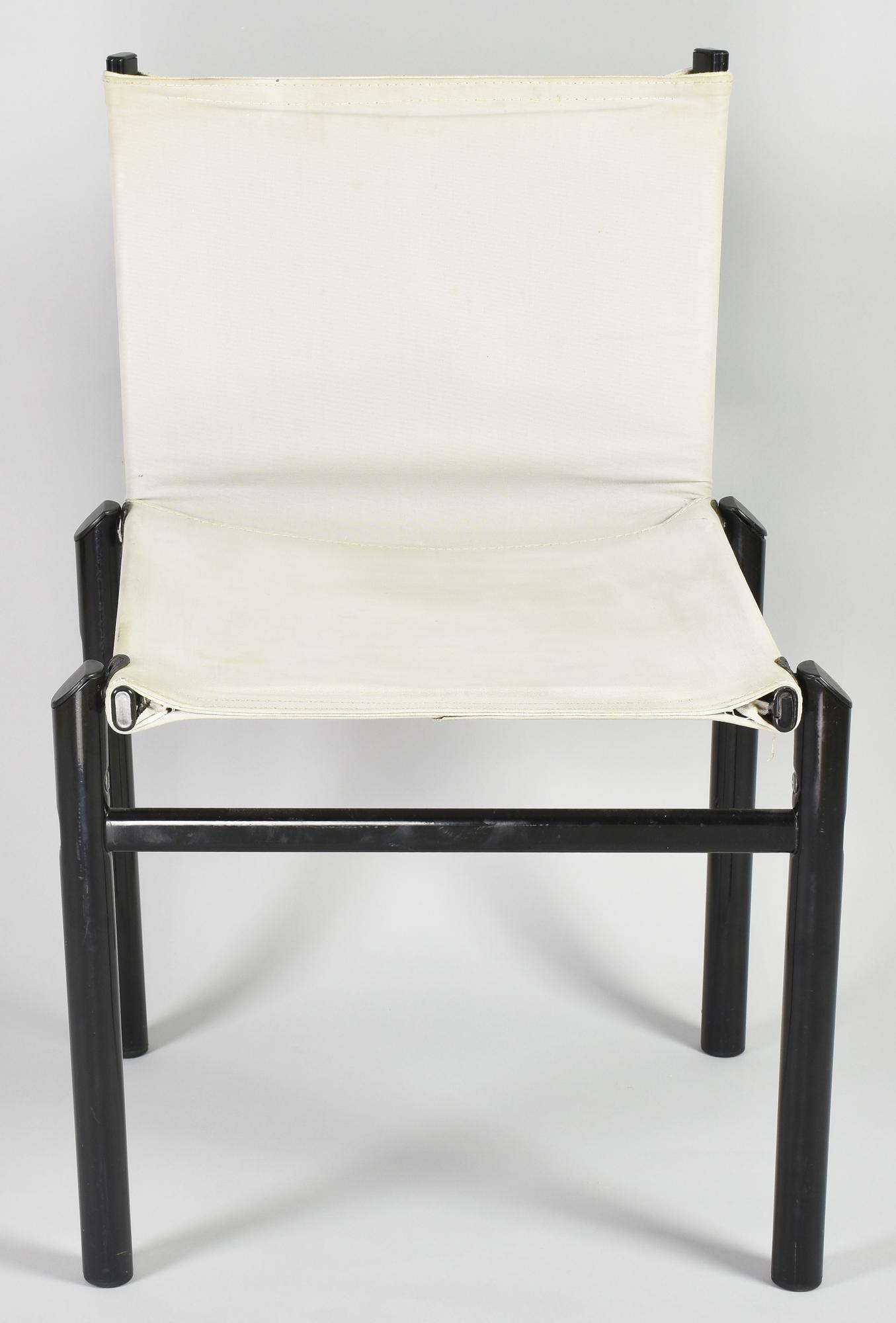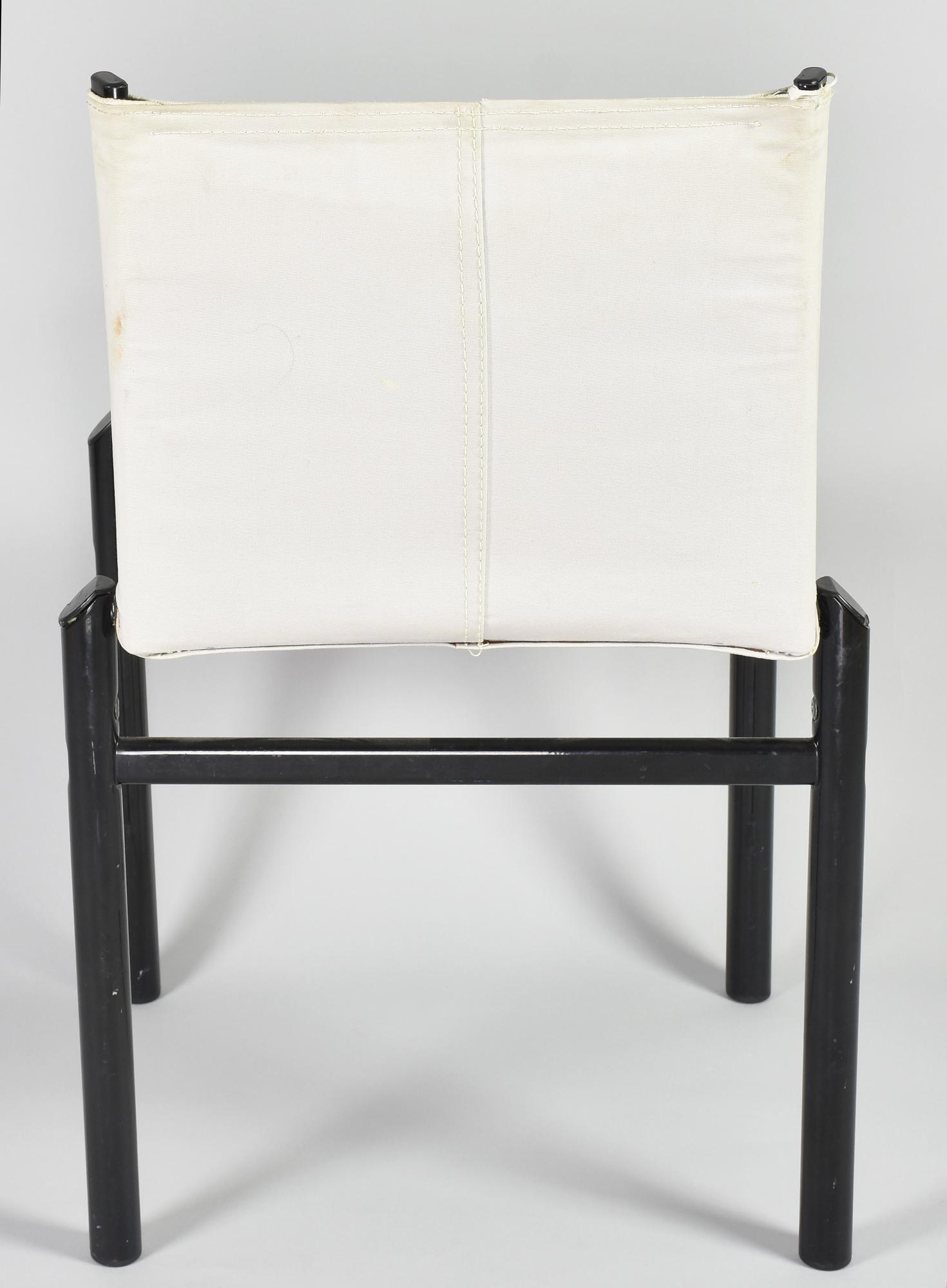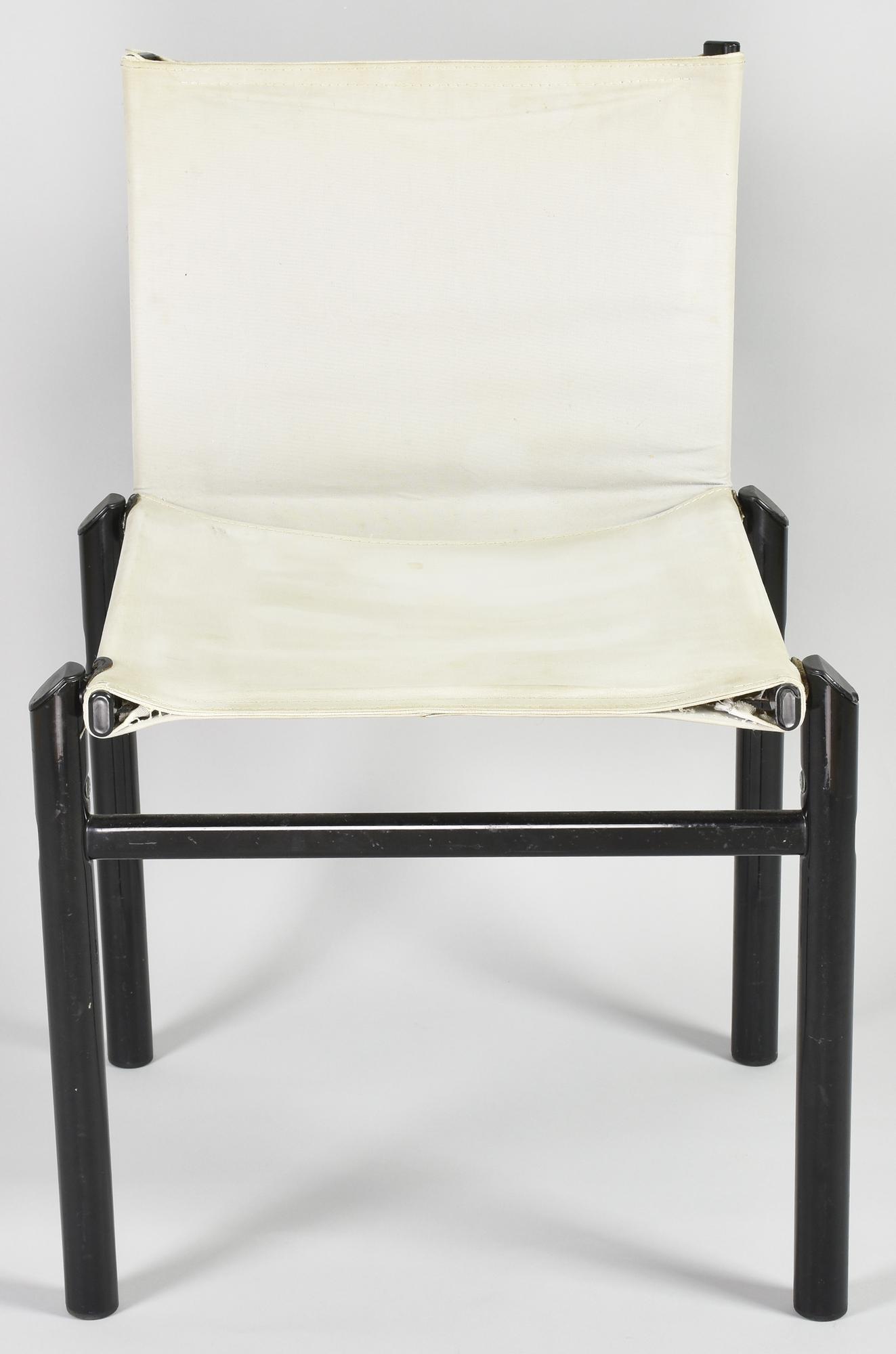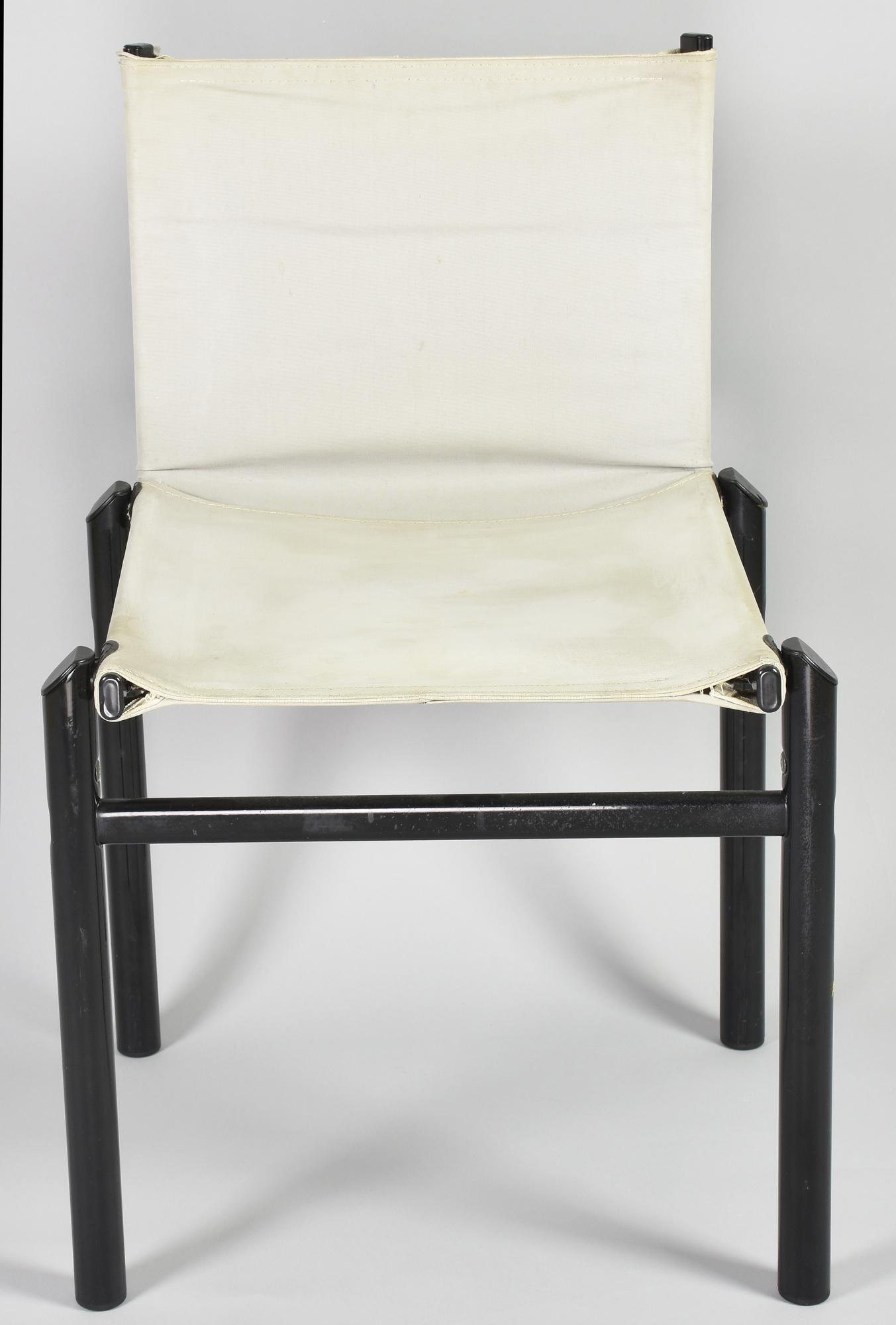 quattro sedie con struttura in metallo e seduta in tela colorata bianca