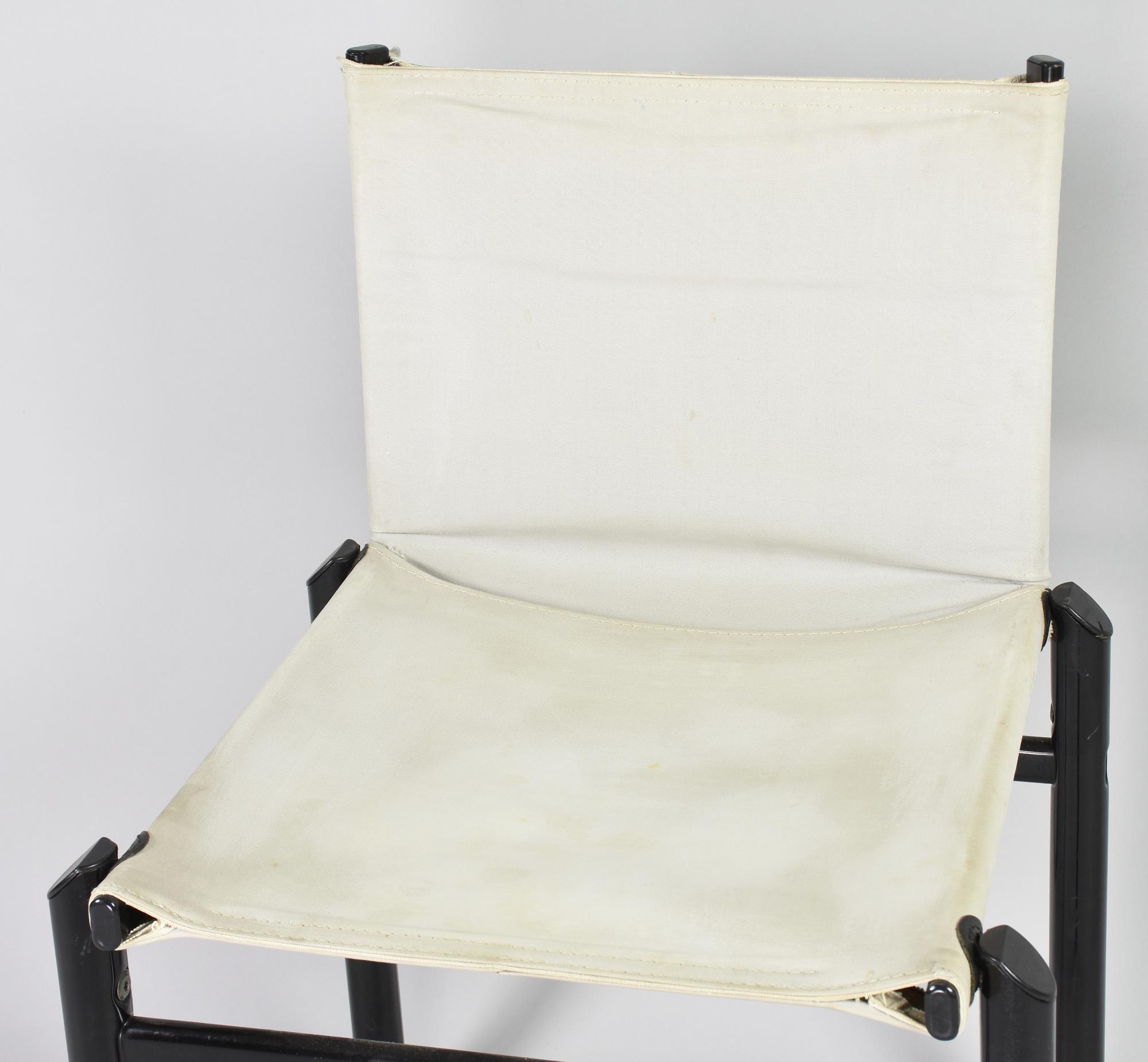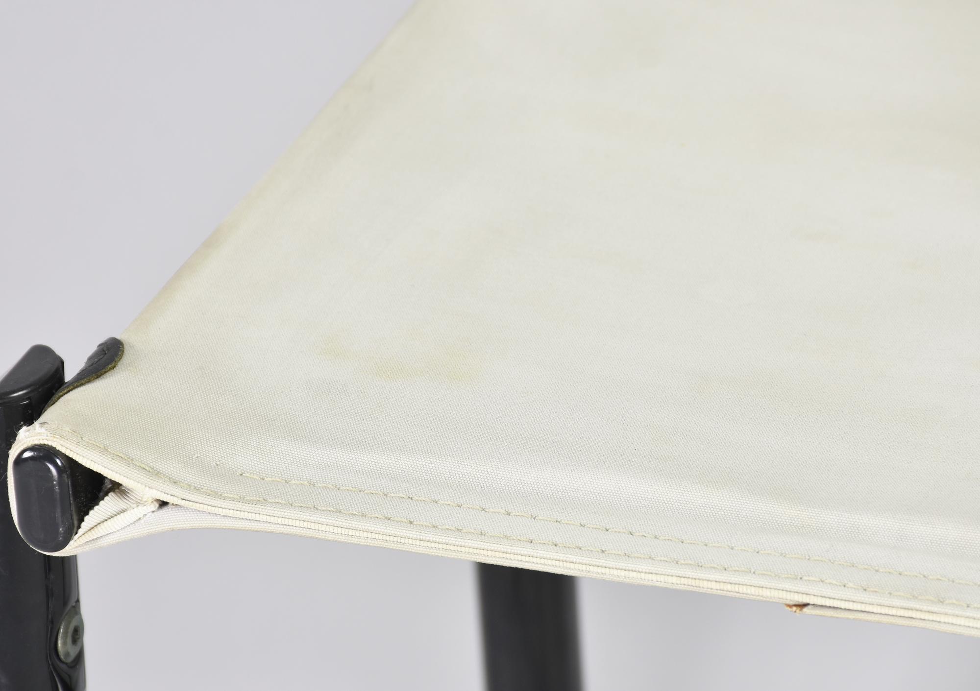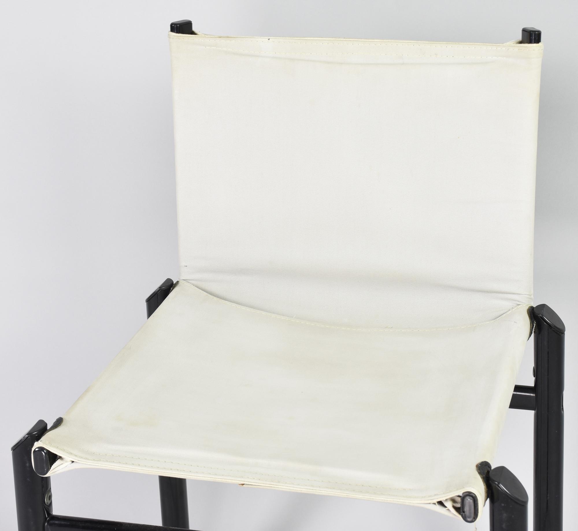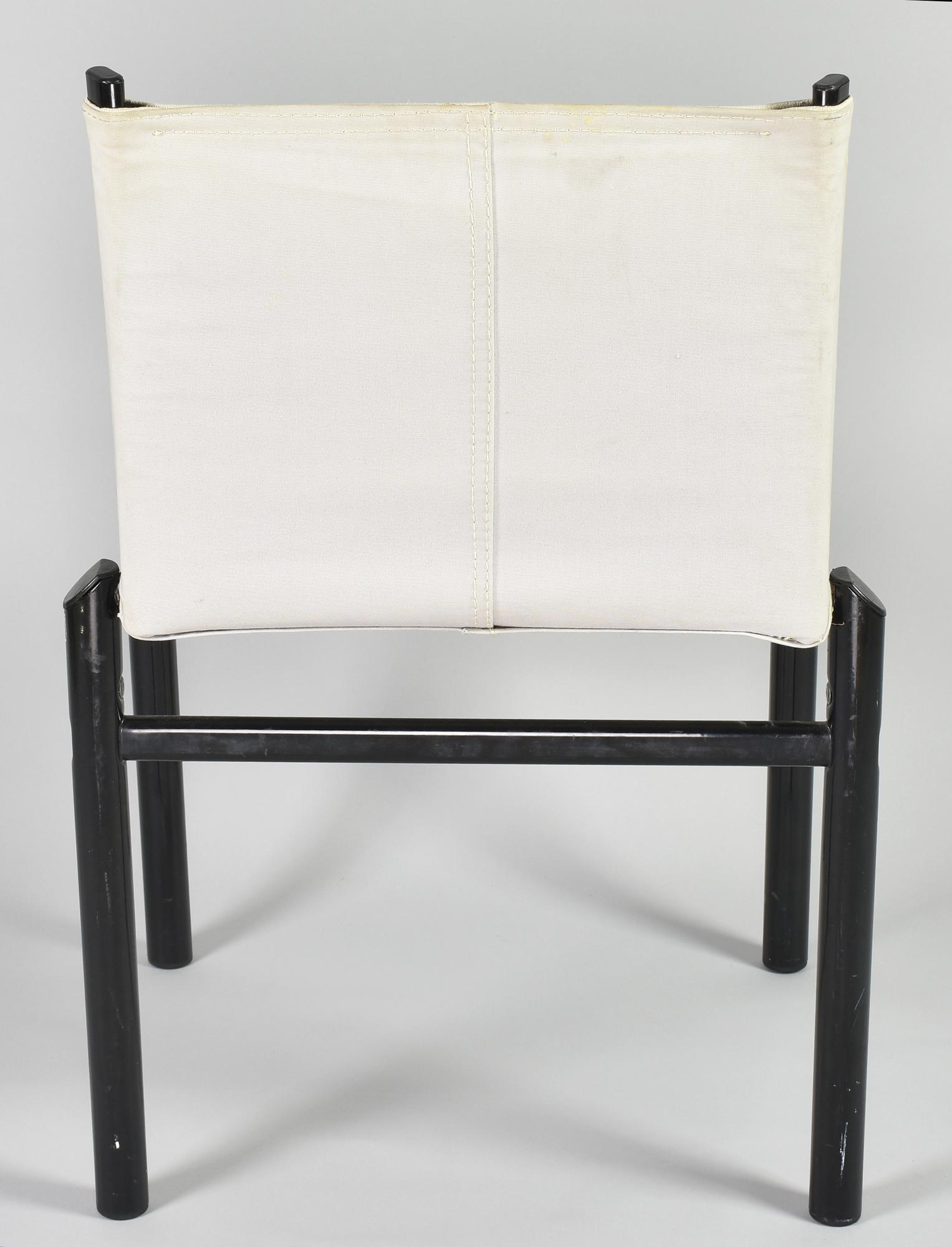 quattro sedie con struttura in metallo e seduta in tela colorata bianca
