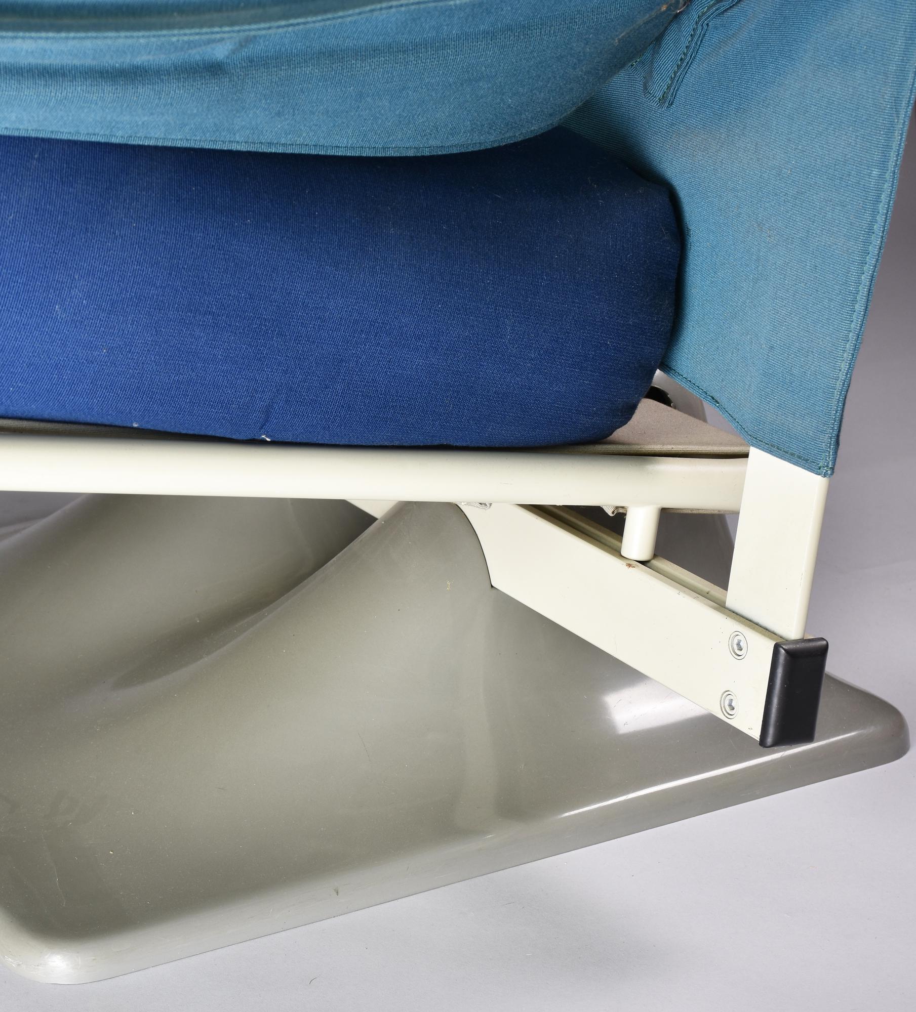 lotto di due poltrone con basamento in materiale plastico grigio, struttura in acciaio, seduta in poliuretano espanso e rivestimento in tessuto