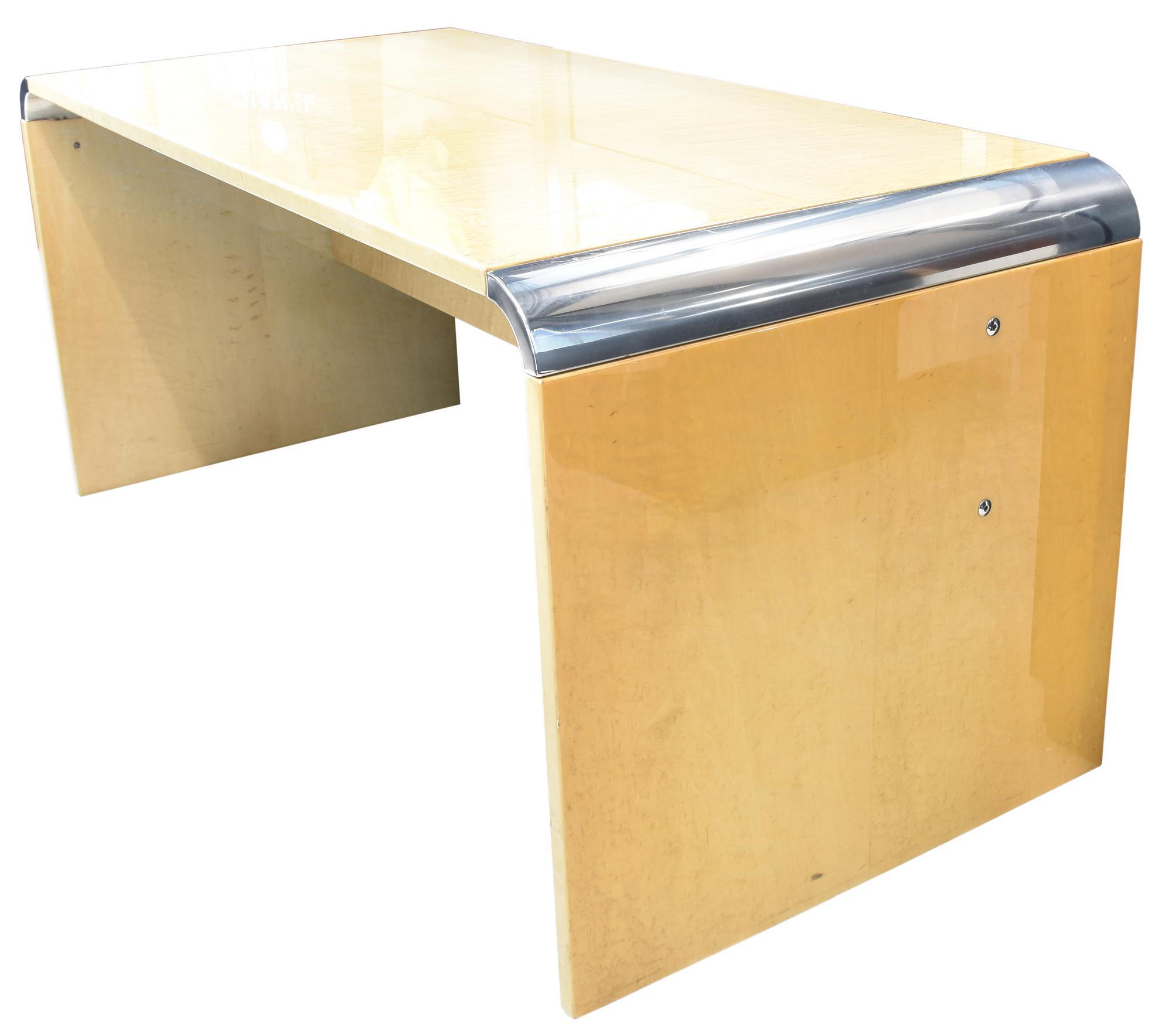 Giovanni Offredi SCRIVANIA PER SAPORITI in legno di radica chiara e inserti...