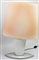 lampada da tavolo in vetro e metallo alla base, composta da due elementi in vetro opalino