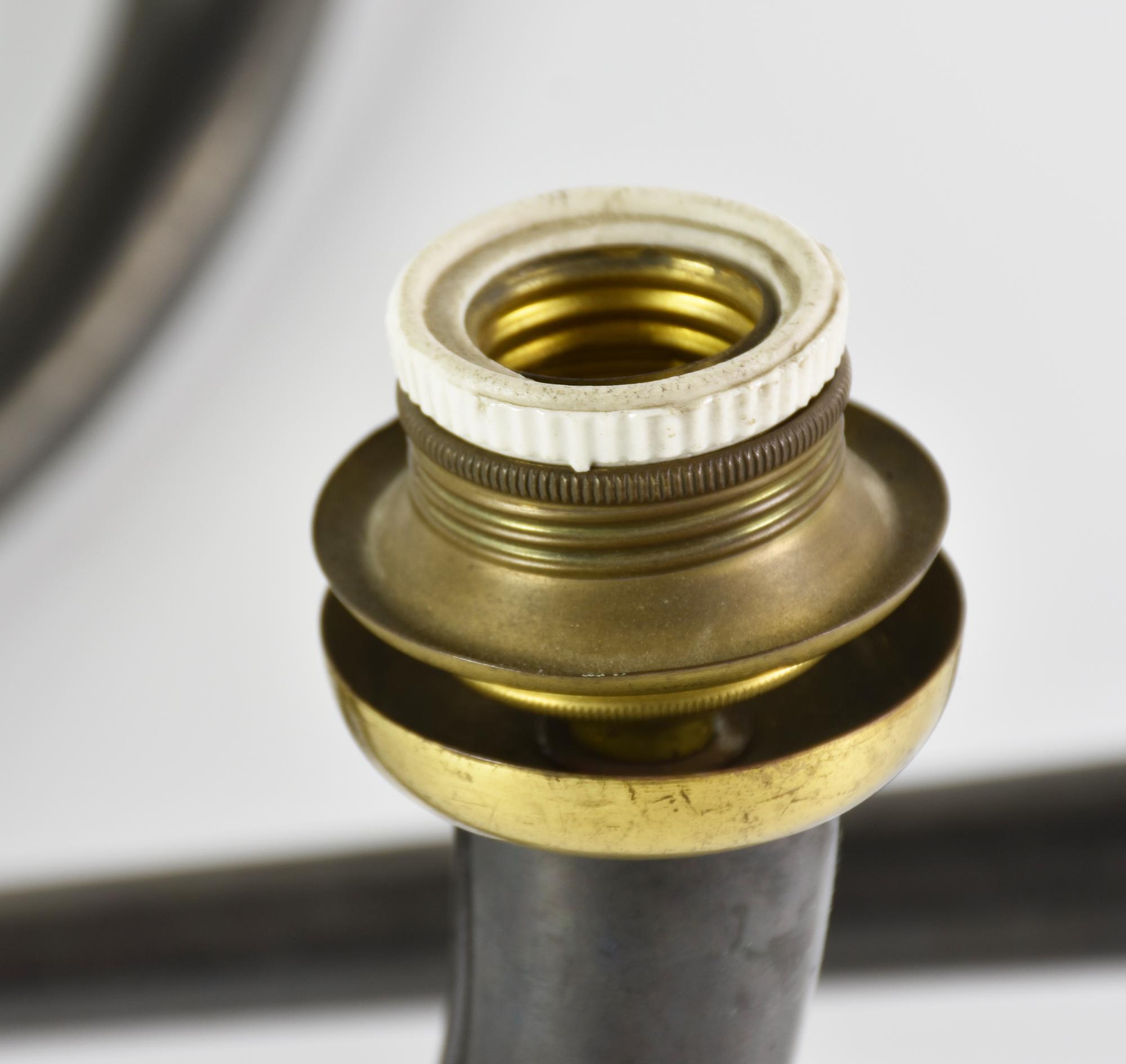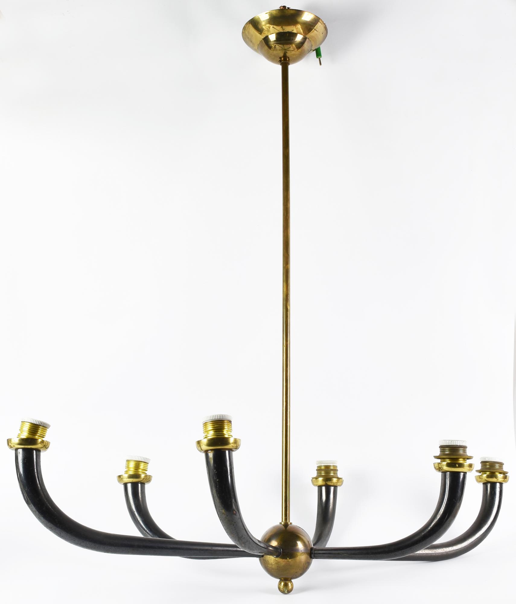 Osvaldo Borsani LAMPADARIO con struttura in metallo nero e dorato a sei...