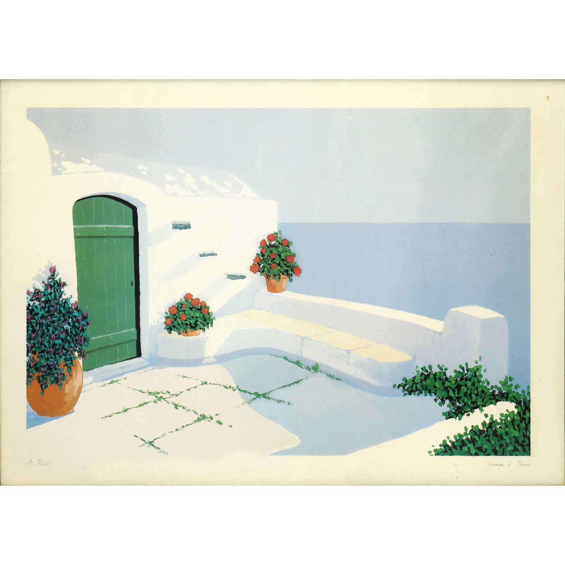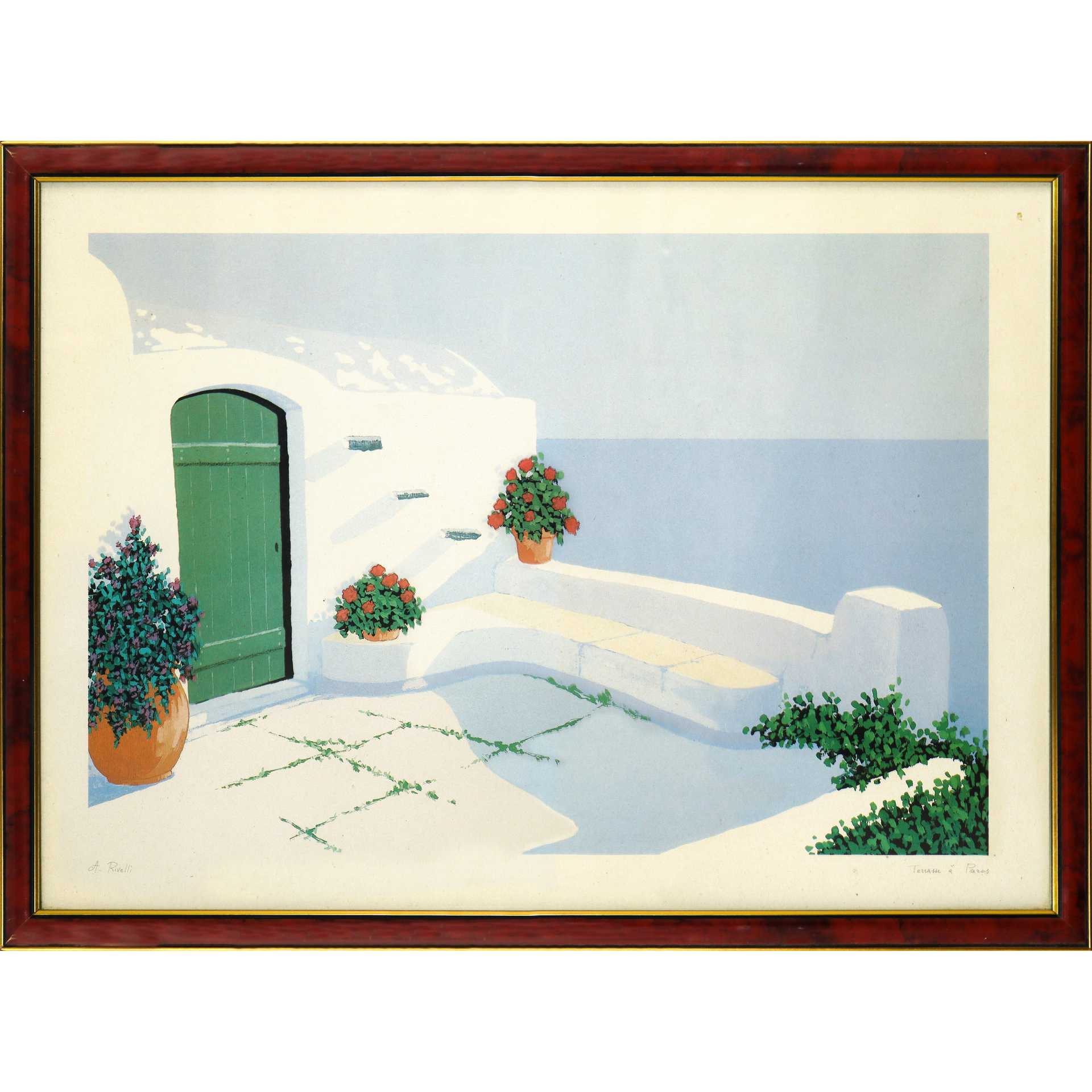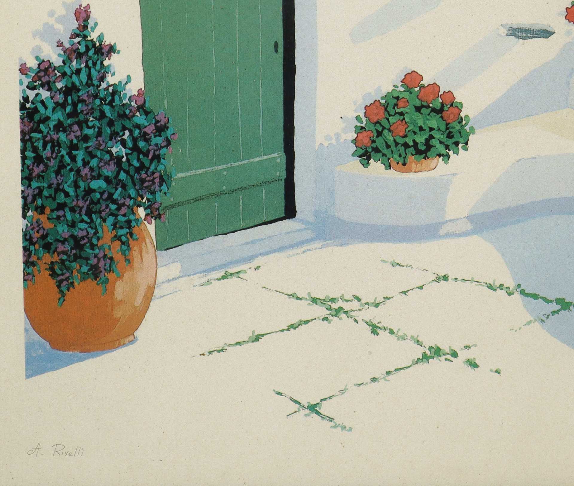 Terrazze a Paros H cm 48x64 Acquerello su cartoncino Firmato in basso a sinistra A. Rivelli e titolato in basso a destra