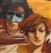 Franco Janni - Personaggi H cm 50x70 - in cornice 79x99 Olio su tela Firmato in basso a sinistra. Al retro titolato, firmato, Timbro della Galleria Pinacoteca Roma.