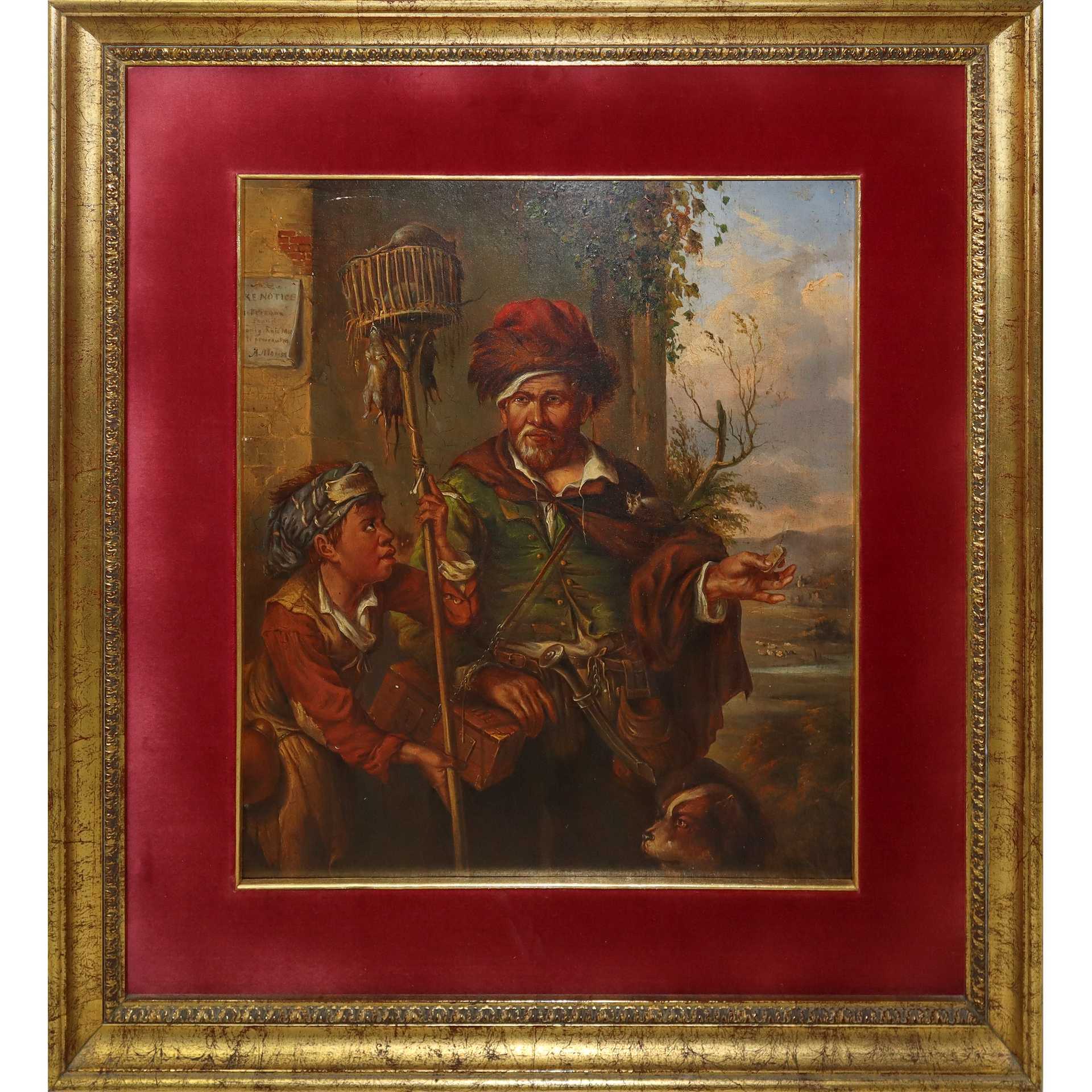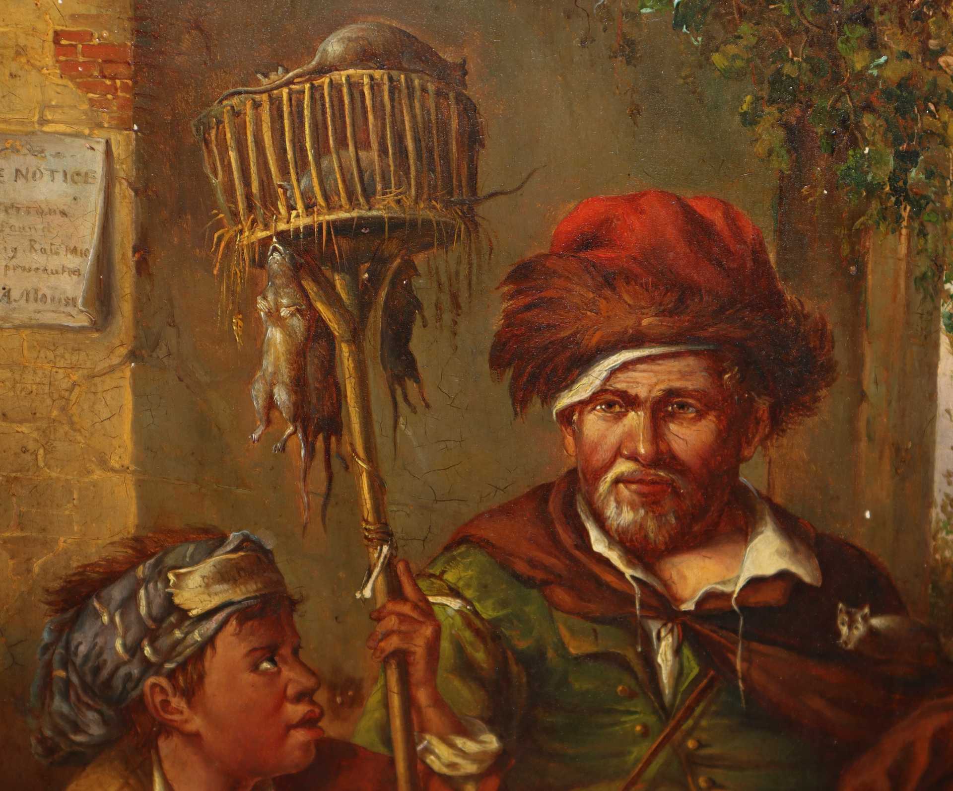 Il cacciatori di ratti e il suo servo, copia da Visscher Cornelis, 20th secolo cm 40x35 in cornice cm 58x53 olio su tavola