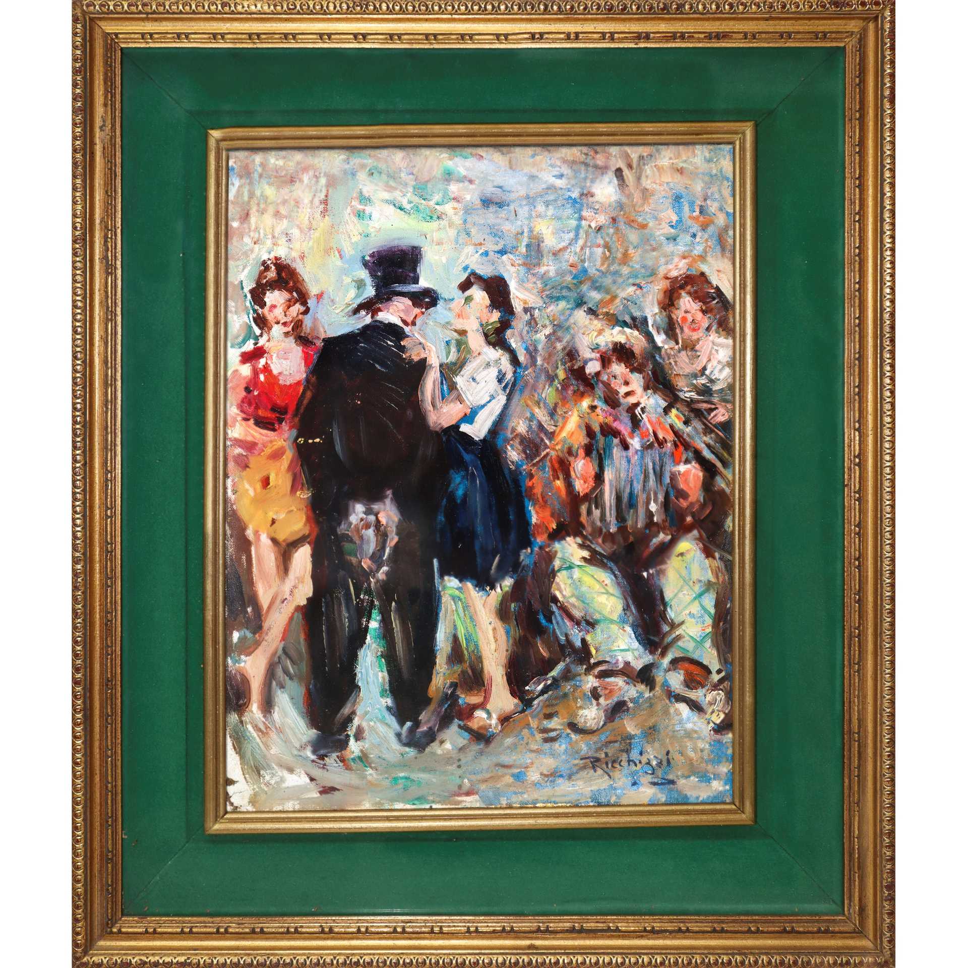 Gaetano Ricchizzi (Napoli 1879-1950) - Coppia che balla nella folla cm 40x30 in cornice cm 57x47 Olio su cartone telato 1. Firmato in basso a destra