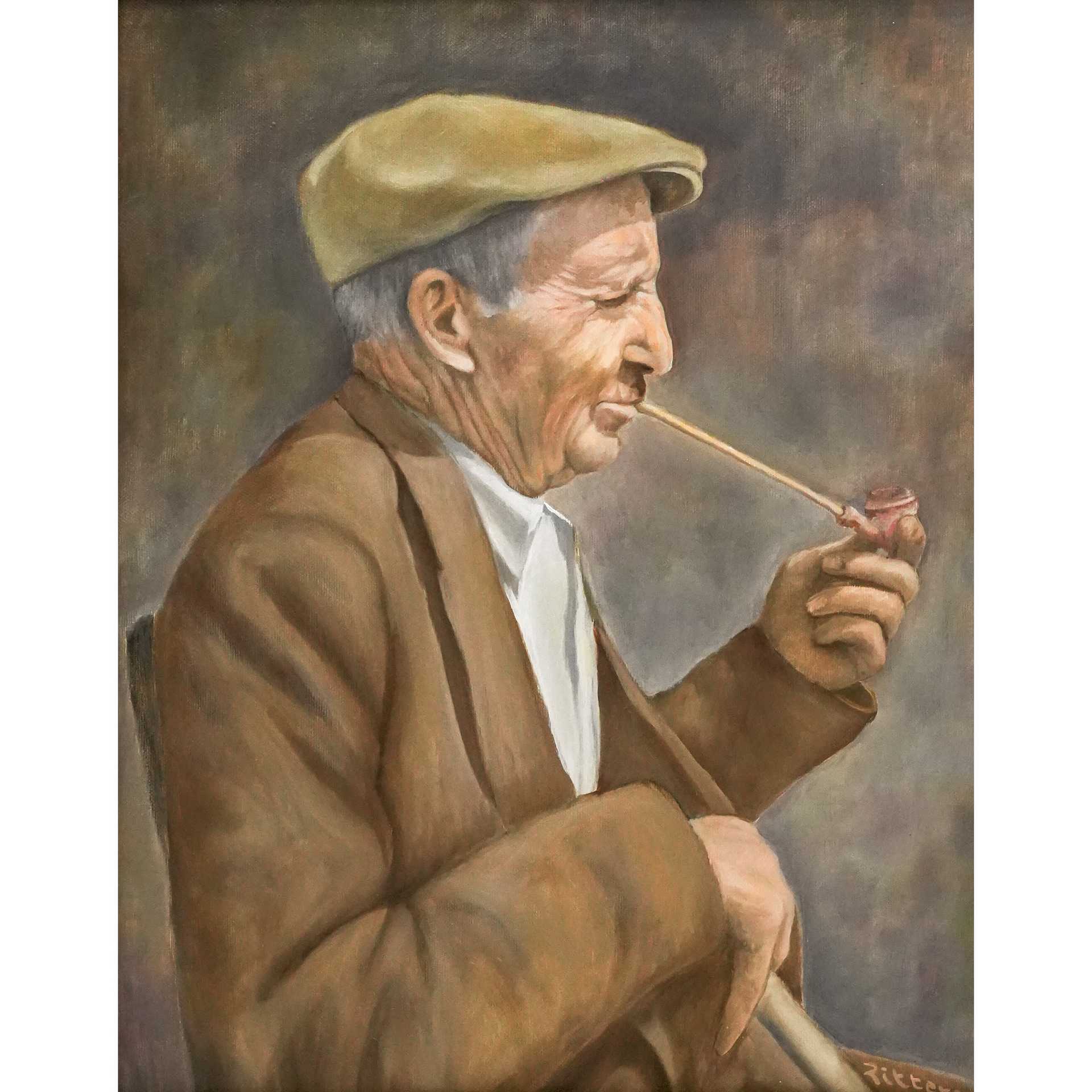 Anziano con pipa H cm 45,5x35,5- in cornice H cm 65,5x56,5 Olio su tela. Firmato in basso a destra Rittera
