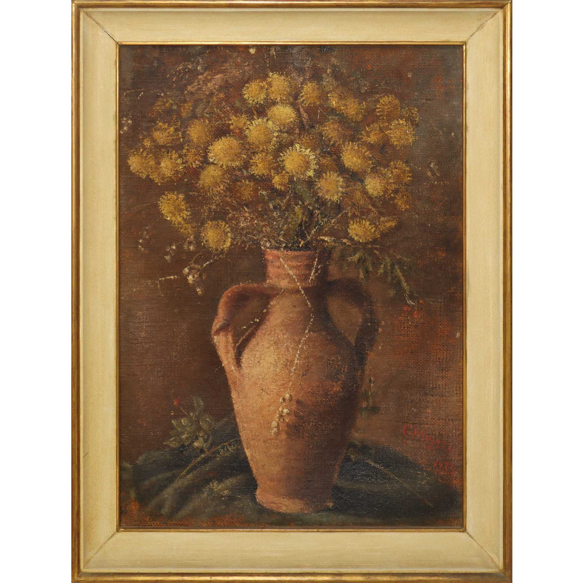 Natura morta con vaso con fiori, 1933 H cm 67.5x48 - in cornice H cm 79x59.5 Firmata Magazzù.Firmata Magazzù.
