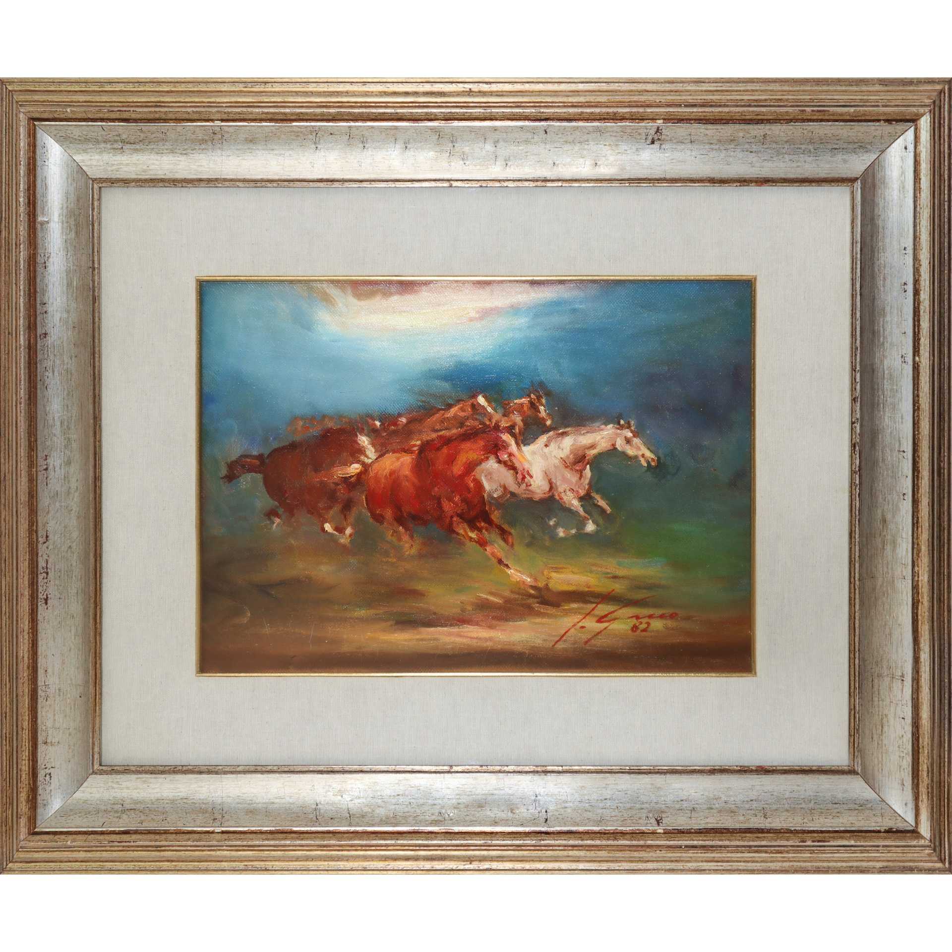 Cavalli, 1982 cm 30x40 in cornice cm 58x67 Firmato e datato in basso a destra L. GrecoFirmato e datato in basso a destra L. Greco