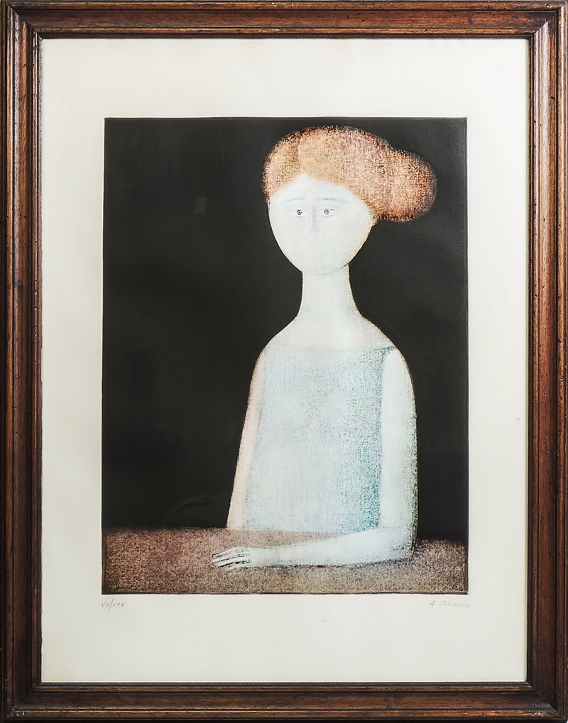 ANTONIO BUENO (1918-1984) Ritratto di fanciulla - Portrait of a Girl litografia - lithograph, es 7/25, firmata, in cornice cm 58x44