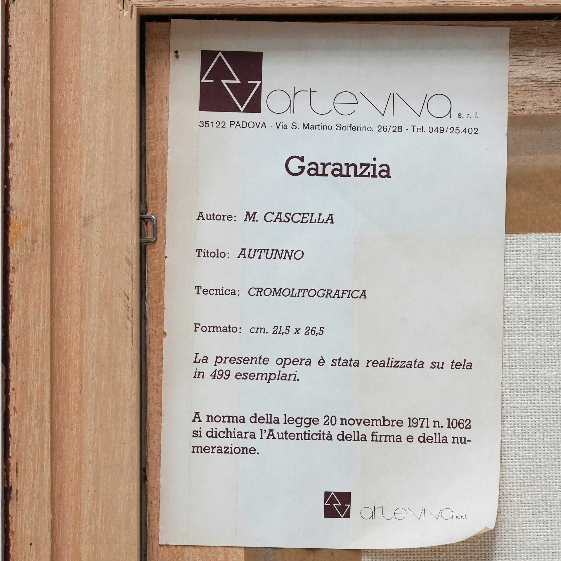 Michele Cascella (Ortona 1892-Milano 1989) - Autunno H cm 21,5x26,5 - in cornice H cm 46x41 Cromolitografia Firmato al fronte in basso a sinistra. Certificato di garanzia al retro di Arteviva S.r.l. L'opera è realizzata su tela in 499 esemplari.