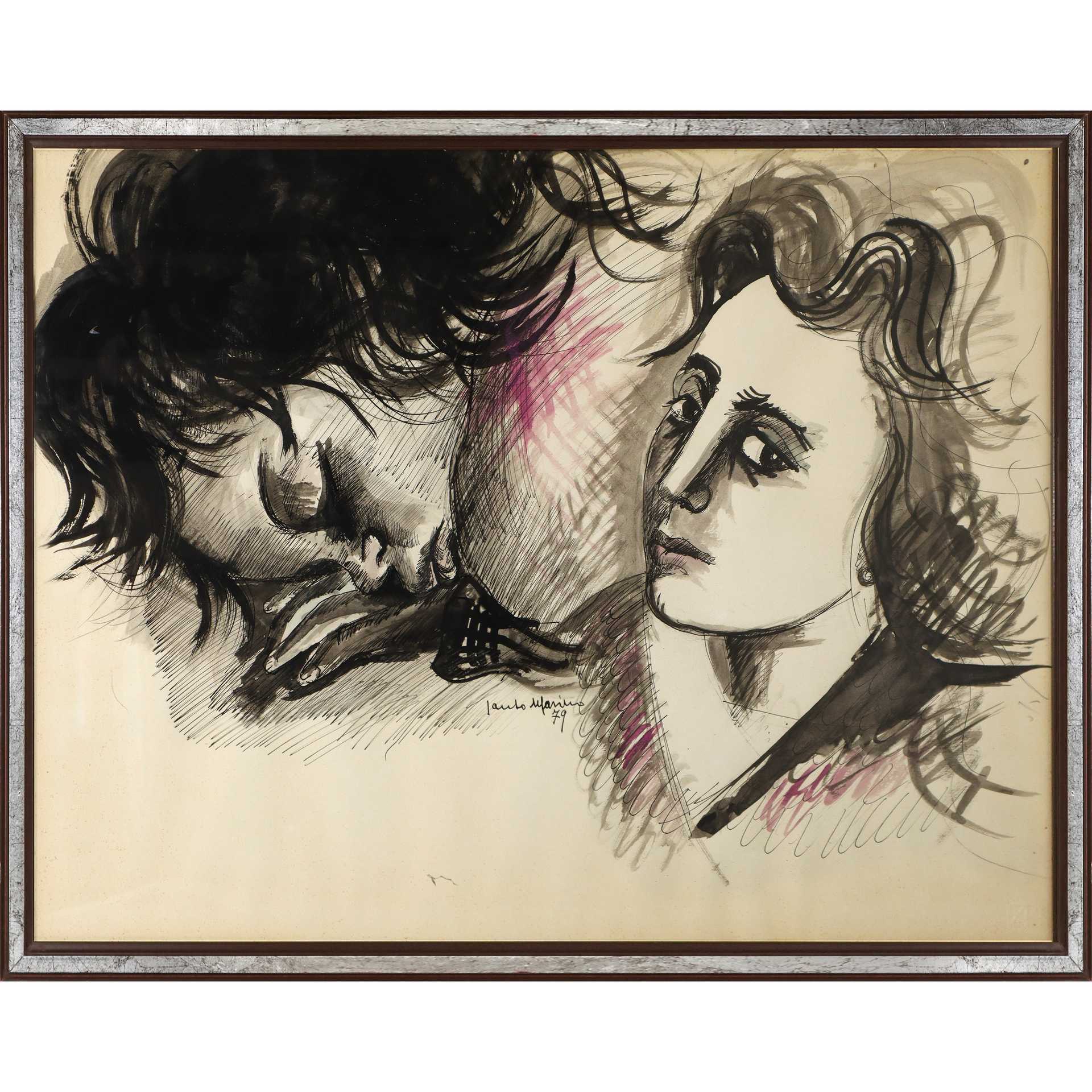 Santo Marino (Militello val di Catania 1924-1991) - Volto dormiente e figura di volto di donna, 1979 H cm 55x75 Tecnica mista su cartoncino Firmato al centro e datato