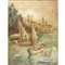 Marina con barca a vela H cm 70x50 - in cornice 82x62 Tecnica mista su tela applicata a masonite Firmato in basso a destra