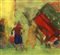 Figura in strada con carretto H cm 25x33 Tecnica mista su carta Attribuibile a Sandro Villoresi