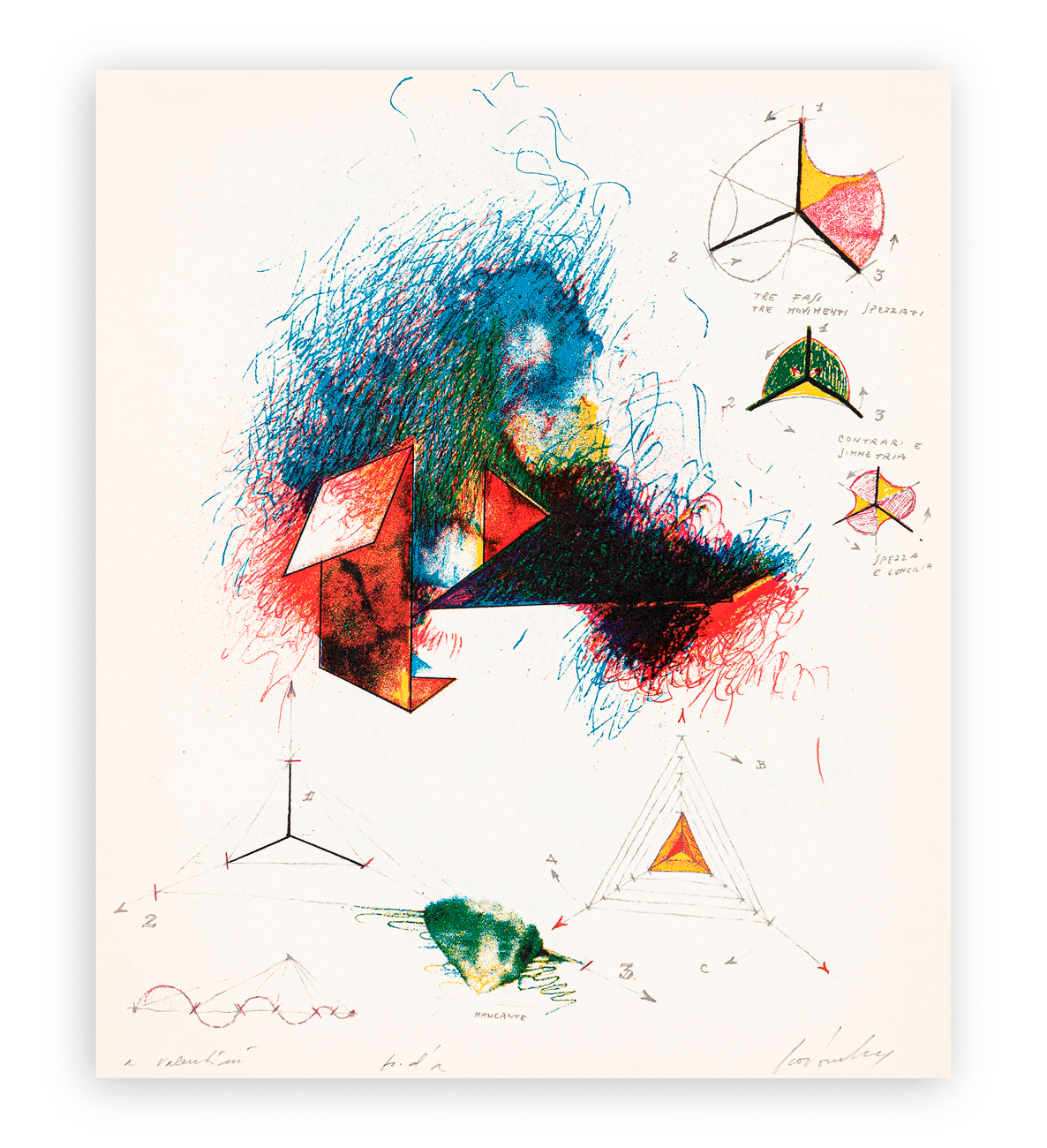 Edizione d'arte composta da un fascicolo recante poesie di numerosi poeti italiani e internazionali e da una litografia di Giò Pomodoro recante firma, dedica ad personam e numerazione (Esemplare 37/100) a matita al fronte