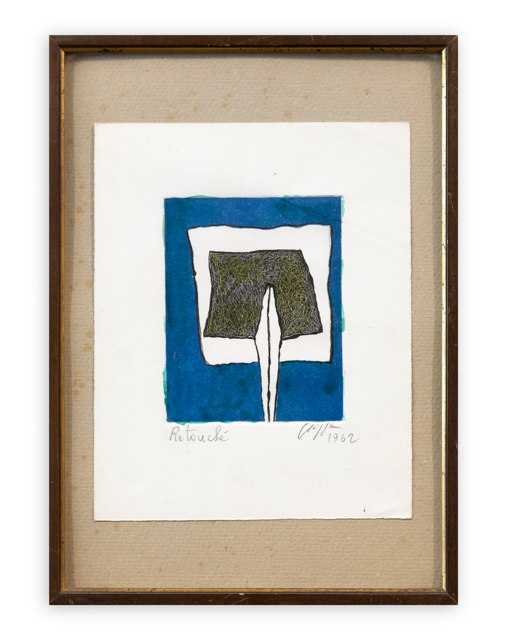 Firma, datazione e iscrizione "Retrouché" a matita al fronte