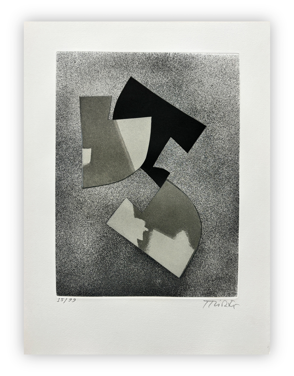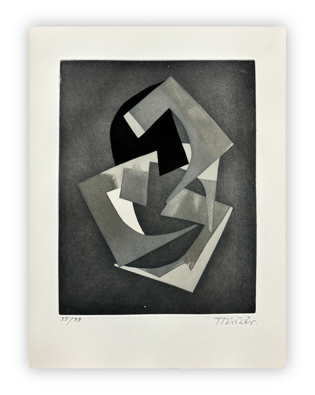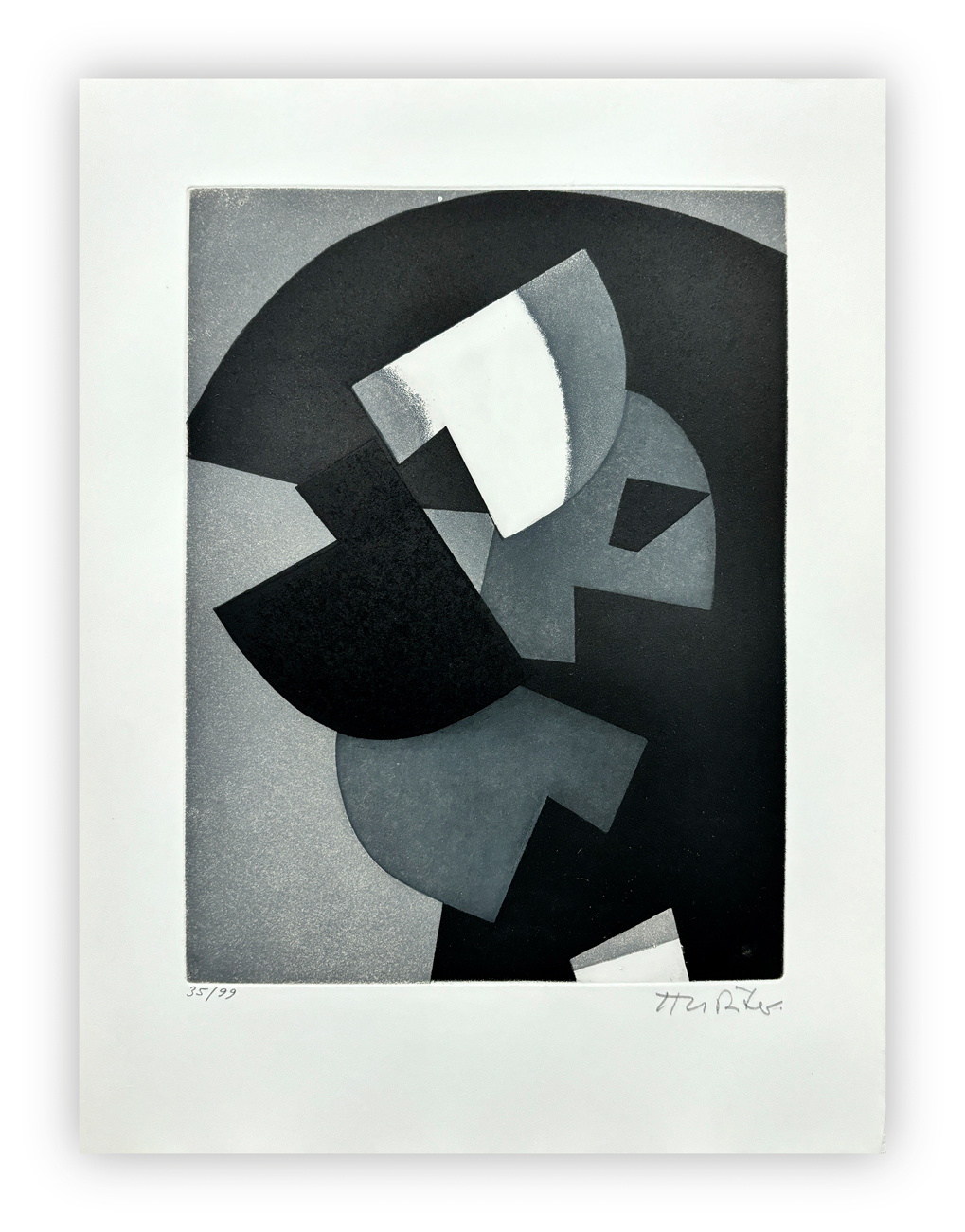 Splendida cartella contenente poesie di Gui Rosey illustrate da 7 incisioni all'acquaforte di Hans Richter, ciascuna recante firma e numerazione (Esemplari 35/99) a matita al fronte