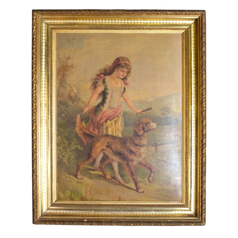 Lotto 156 | Oleografia su tavola raffigurante fanciulla con cane