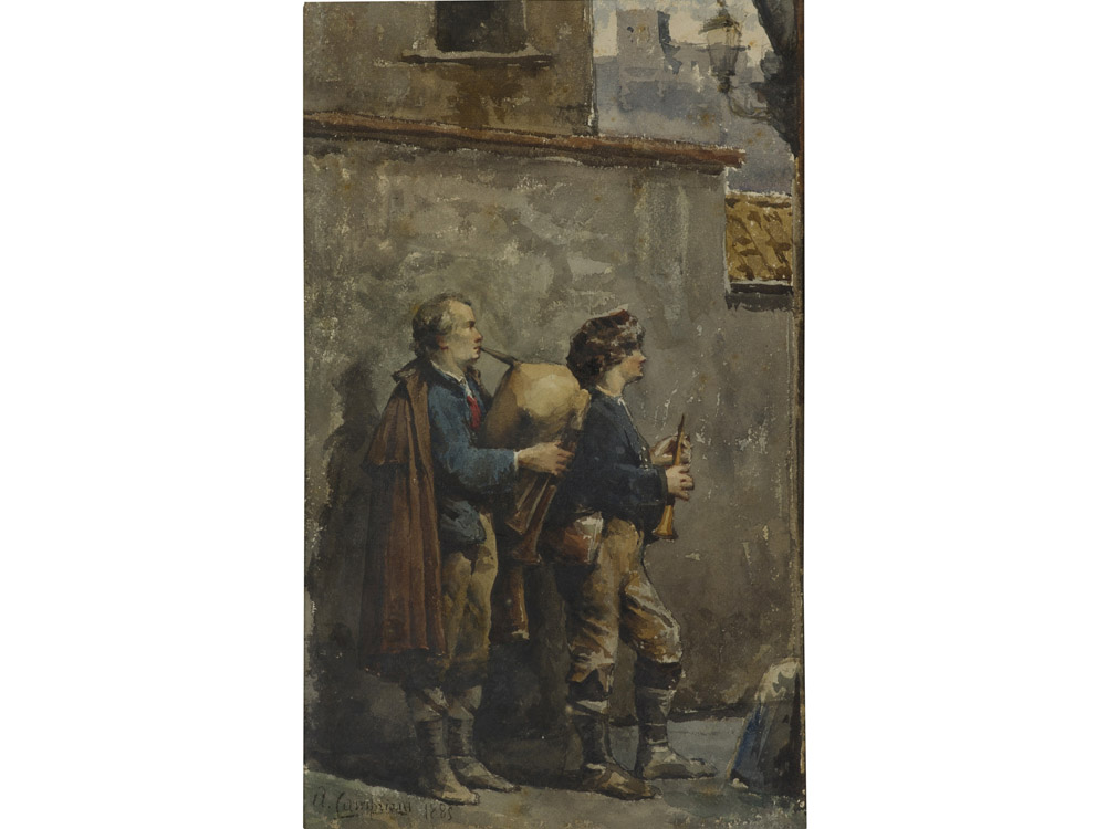 Alceste Campriani (Terni 1848–Lucca 1933) Musicisti Acquarello su carta Firmato Misure 37.5x23 cm