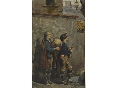 Alceste Campriani (Terni 1848–Lucca 1933) Musicisti Acquarello su carta...