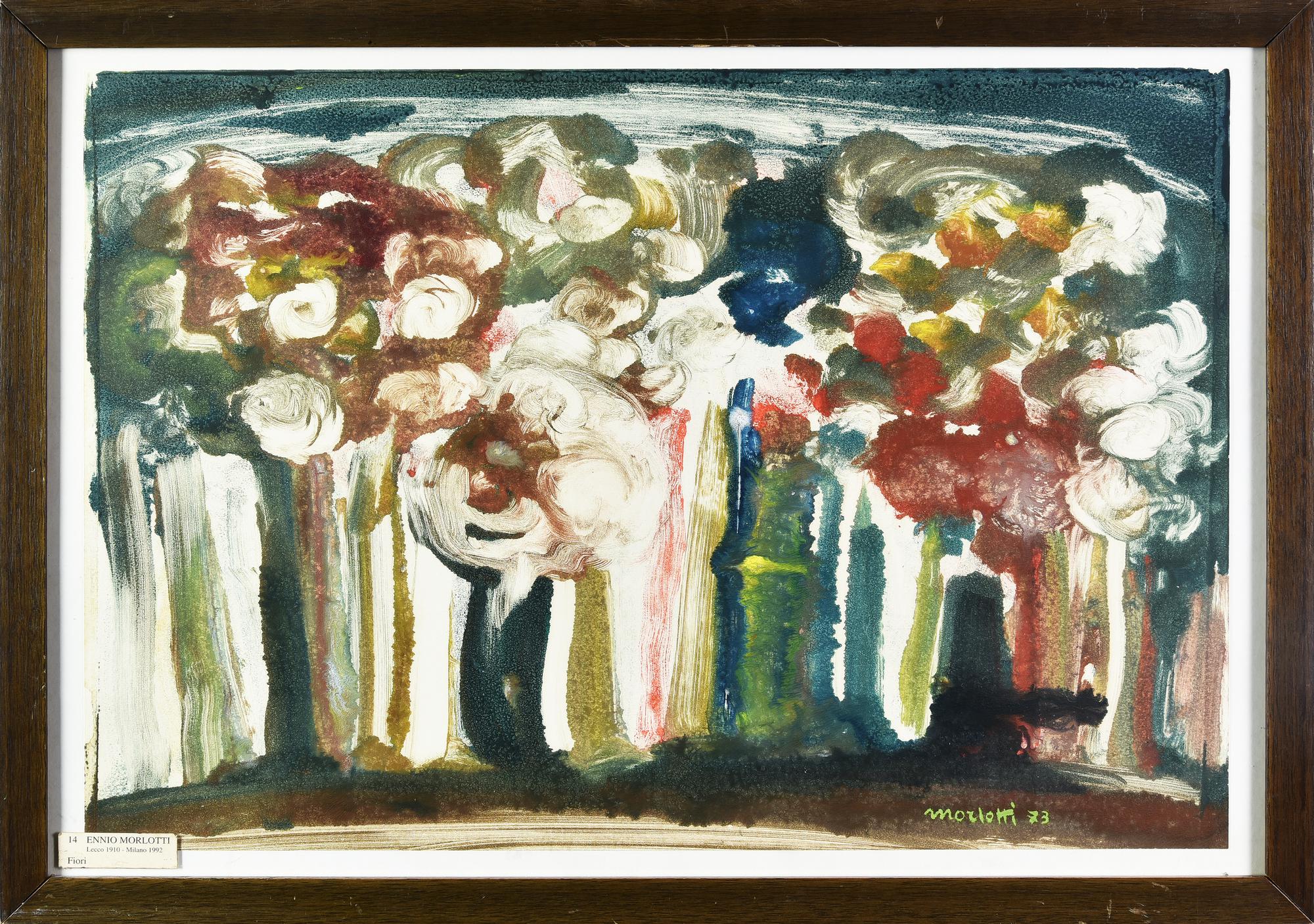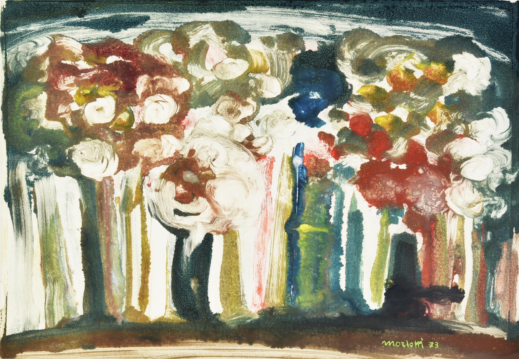Morlotti Ennio (a firma) (1910 - 1992) ALBERI, 1973 tempera su carta, cm...