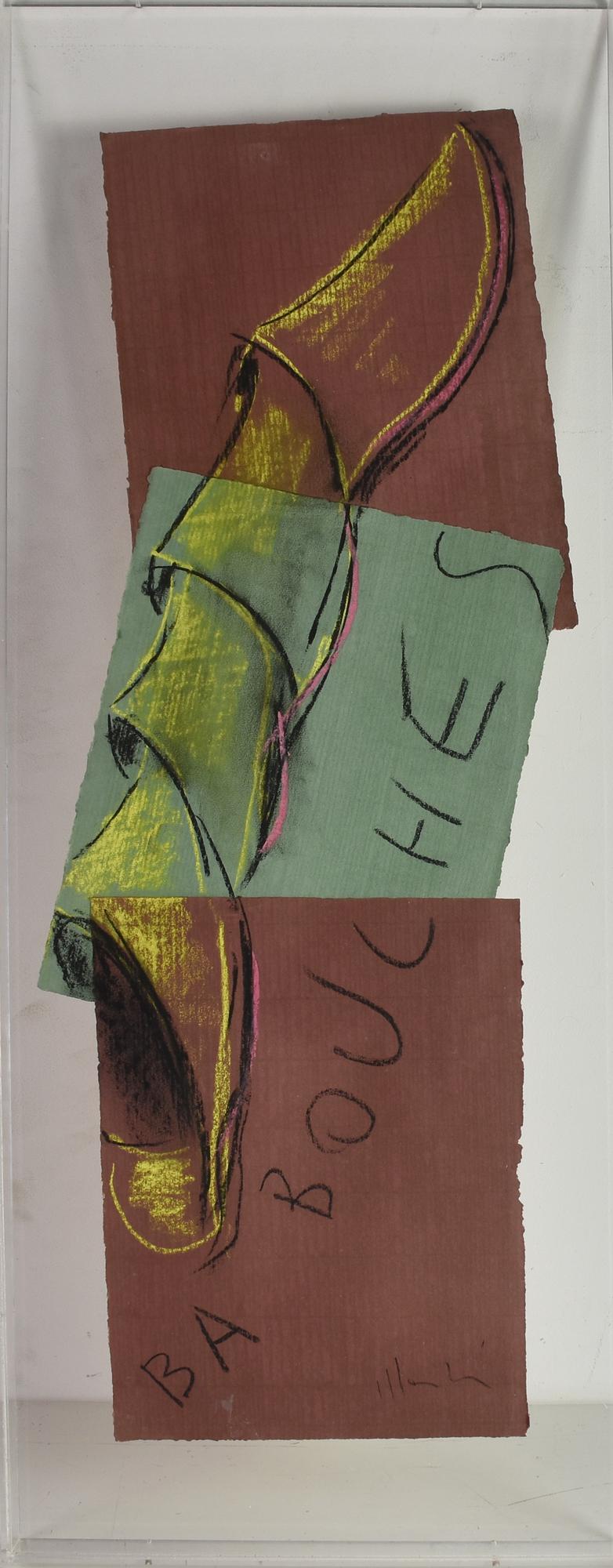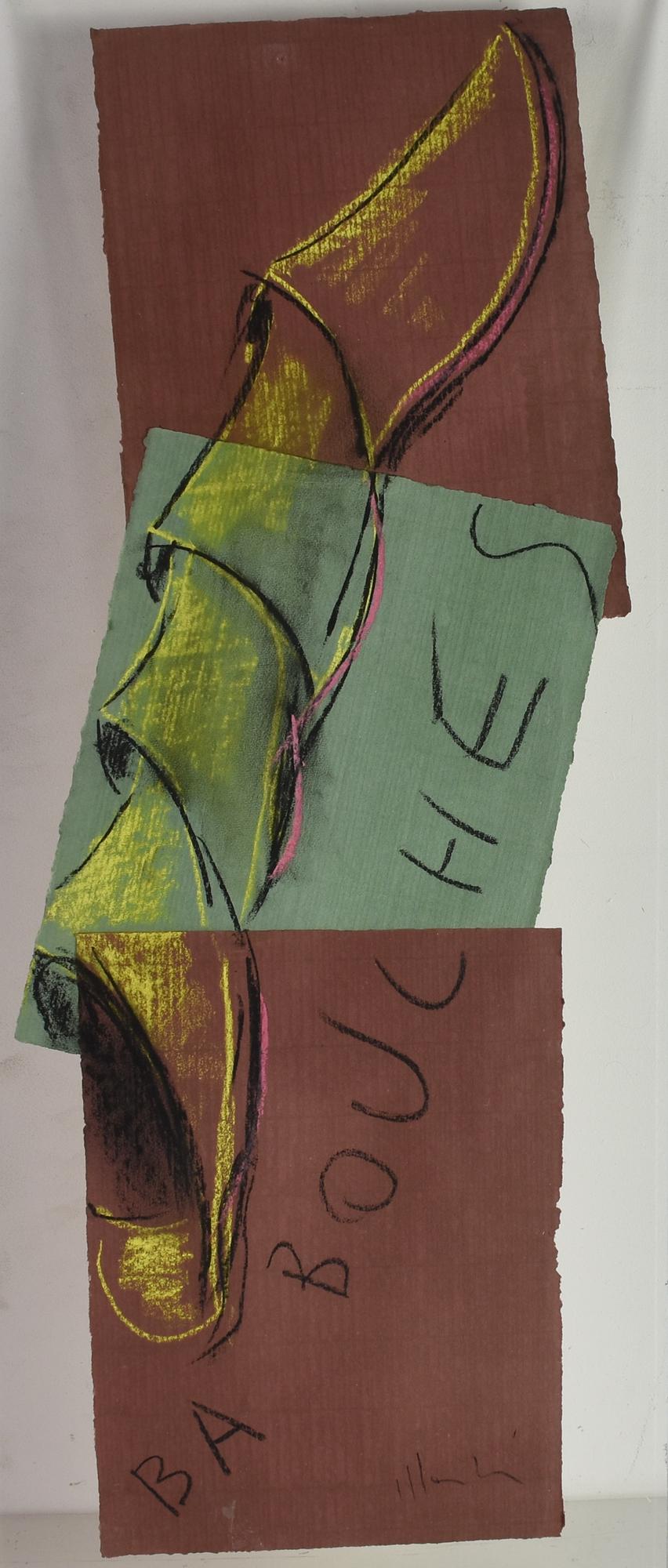 Aldo Mondino (1938 - 2005) BABOUCHES, 2001 pastelli su carta, cm 90x30 firma...