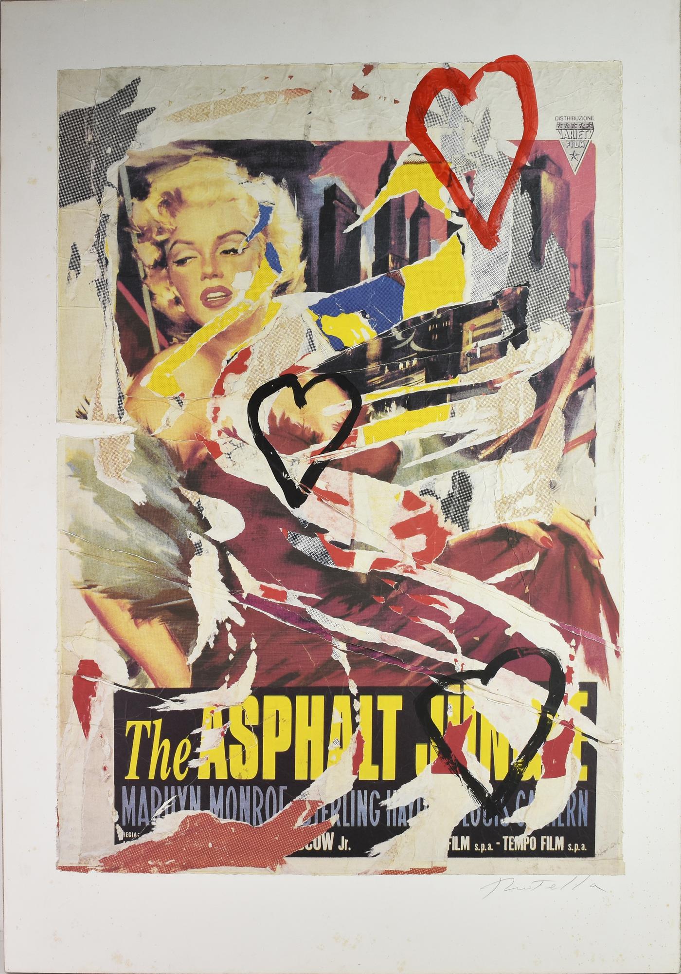 Mimmo Rotella (1918 - 2006) MARYLIN I CUORI, 1998 serigrafia decollage con...
