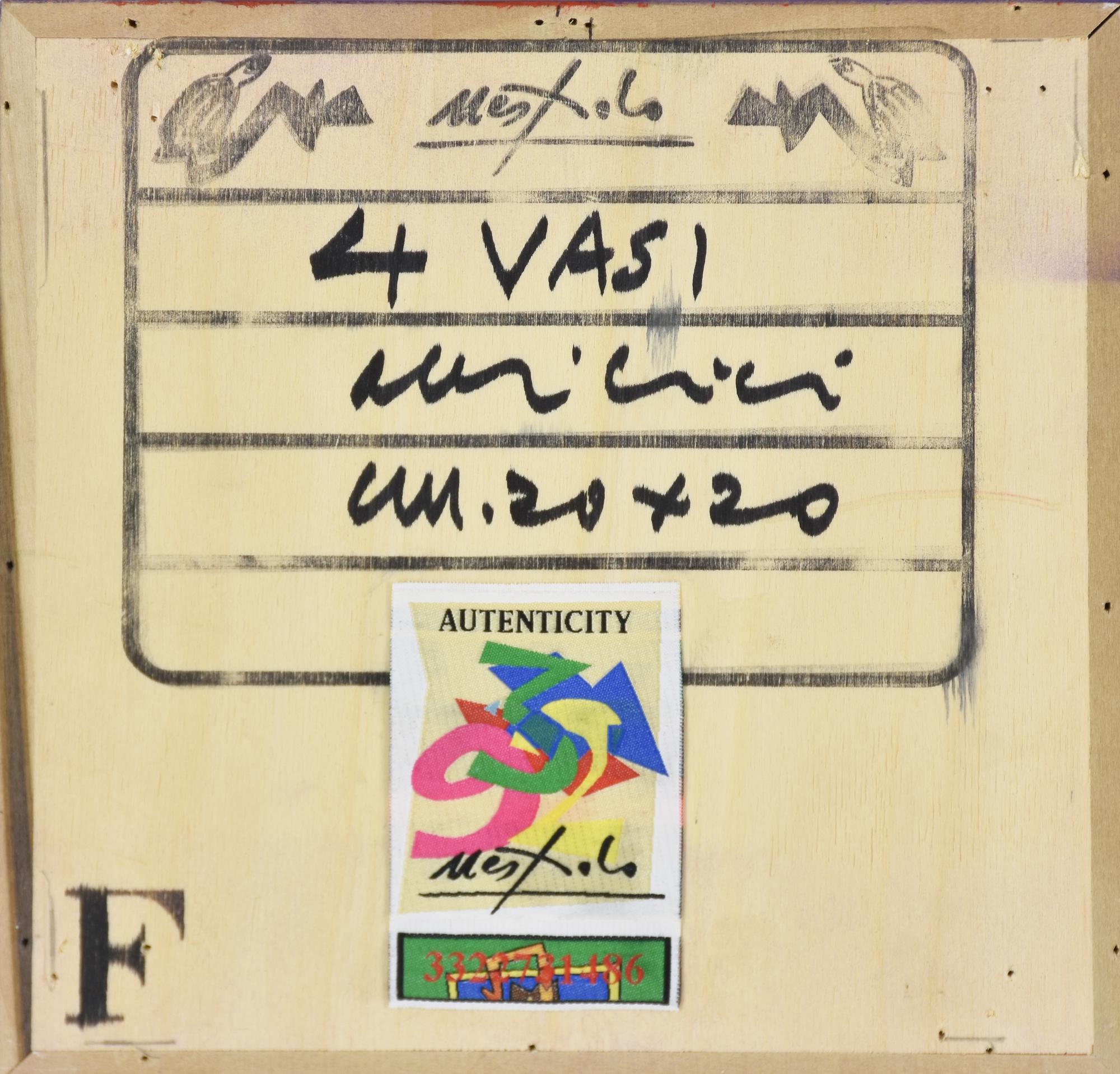 Lotto 120 | Ugo Nespolo (1941) 4 VASI acrilico su legno, cm 20x20x4,5 firma sul retro:...