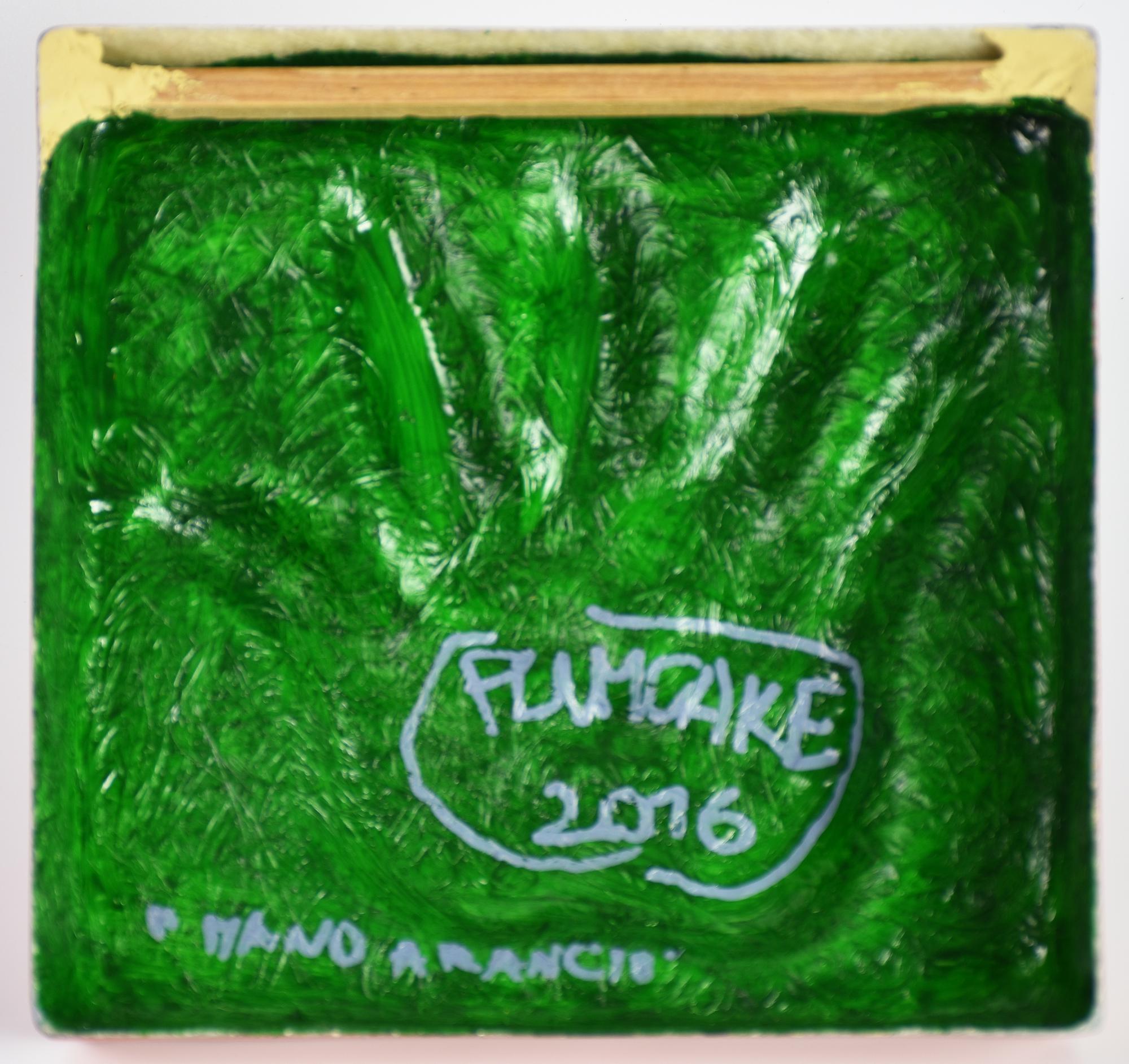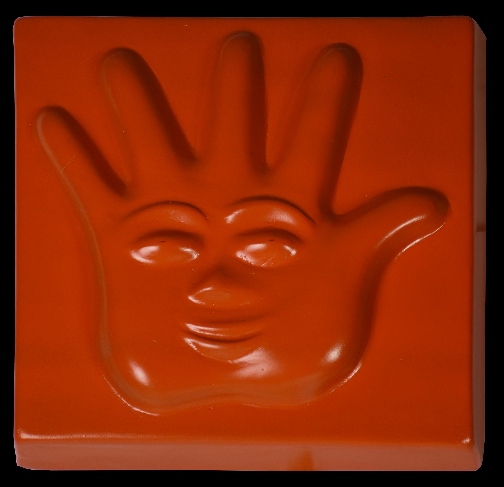 Plumcake (1983) MANO ARANCIO, 2016 vetroresina smaltata, cm 20x20x4 sul...