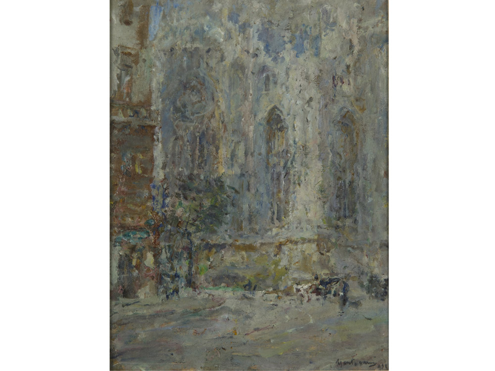 Luigi Mantovani (Milano 1880–1957) Duomo di Milano Olio su cartoncino Firmato Misure 25x19 cm