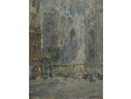 Luigi Mantovani (Milano 1880–1957) Duomo di Milano Olio su cartoncino Firmato...