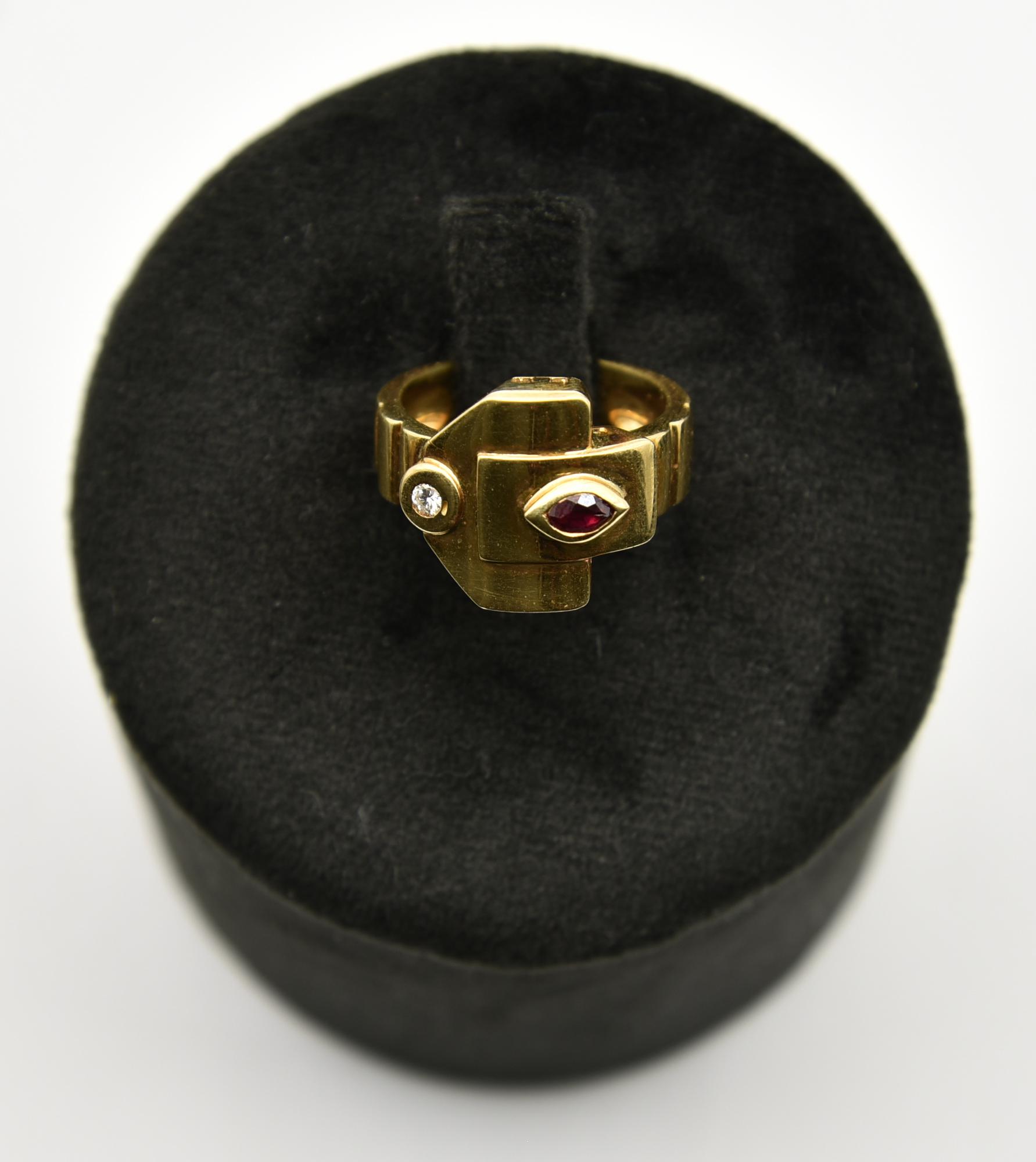 (Caltanissetta 1931 – Oaxaca, Messico 2009) - ANELLO IN ORO GIALLO, RUBINO E DIAMANTE, PRIMI ANNI 2000