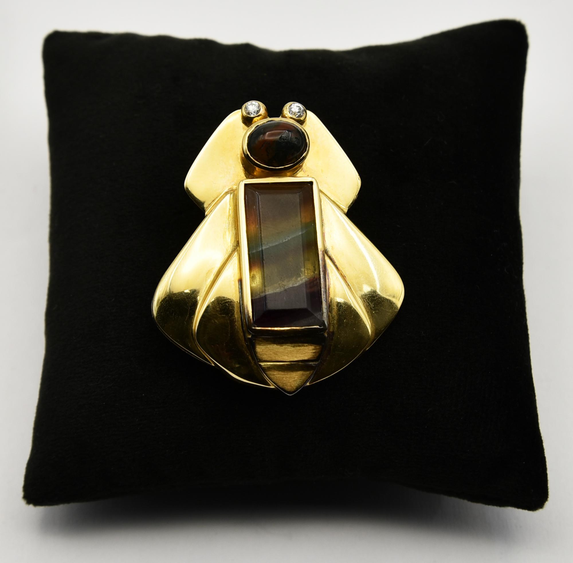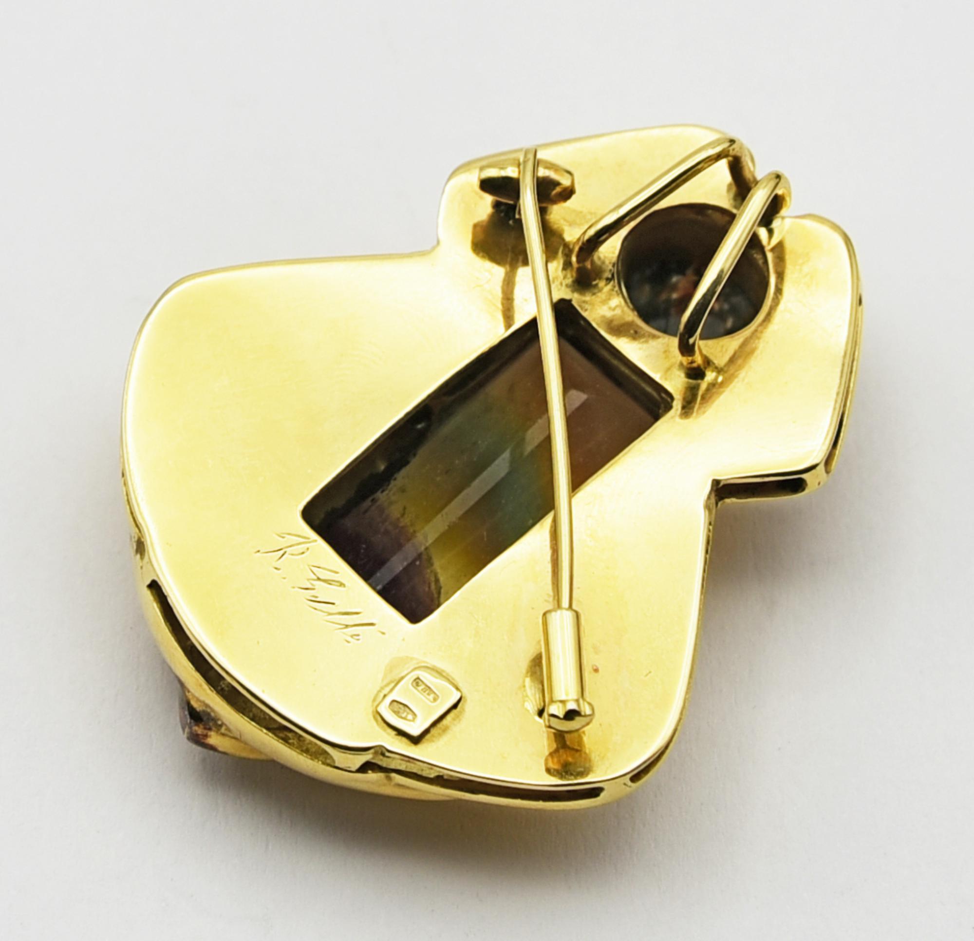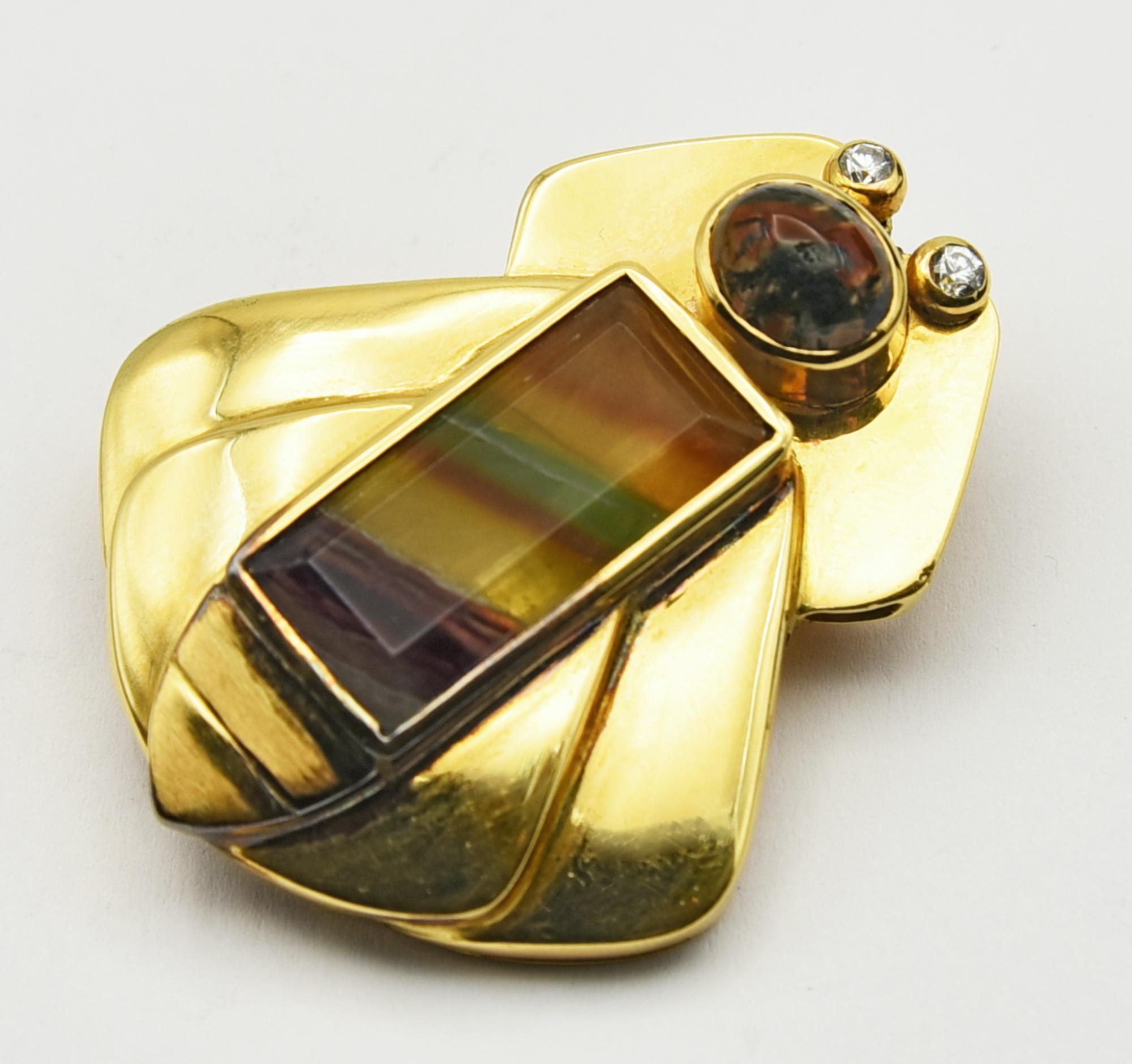 (Caltanissetta 1931 – Oaxaca, Messico 2009) - PENDENTE-SPILLA IN ORO GIALLO CON DIASPRO SAGUIGNO E QUARZO AMETRINO, PRIMI ANNI 2000