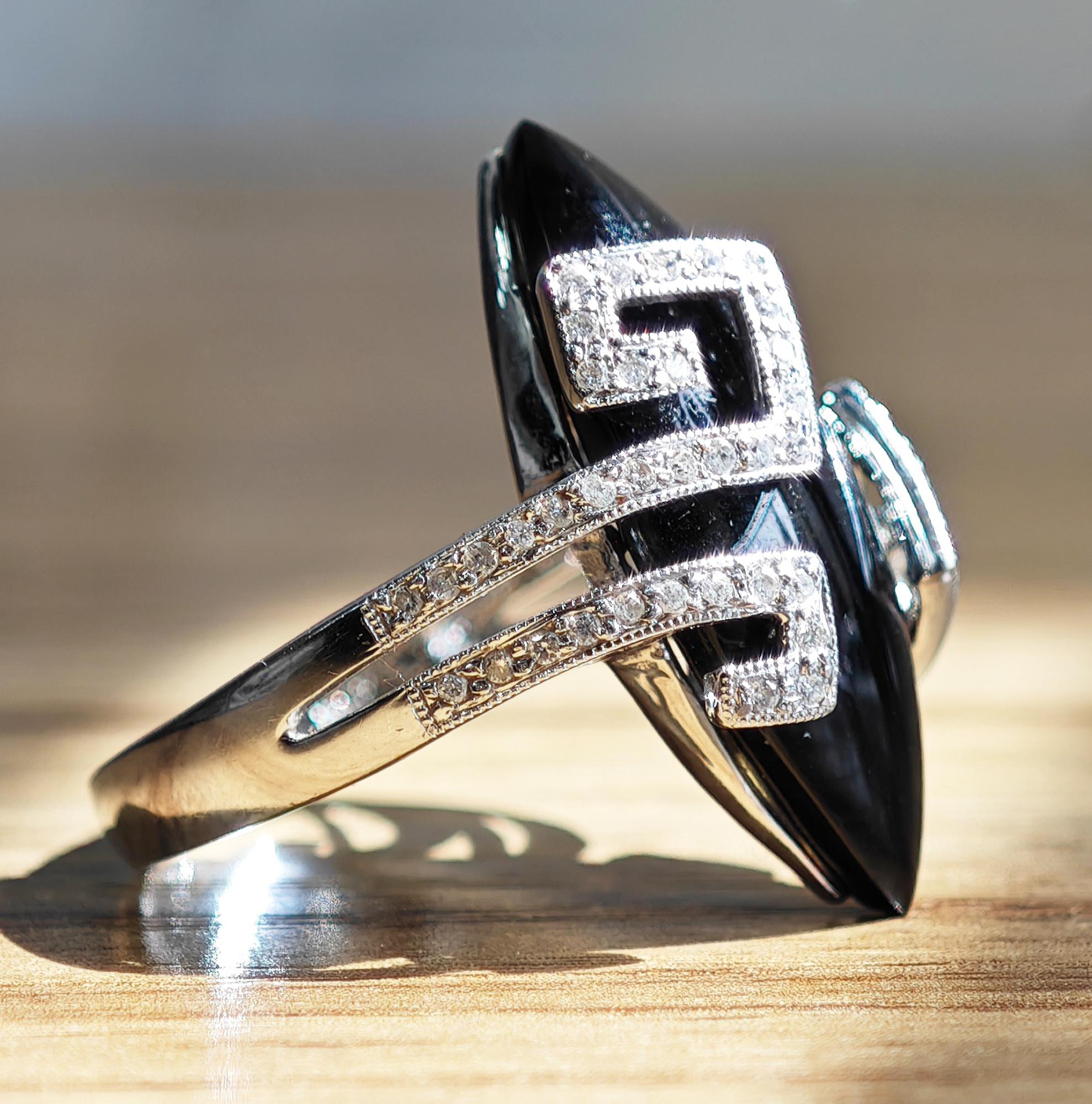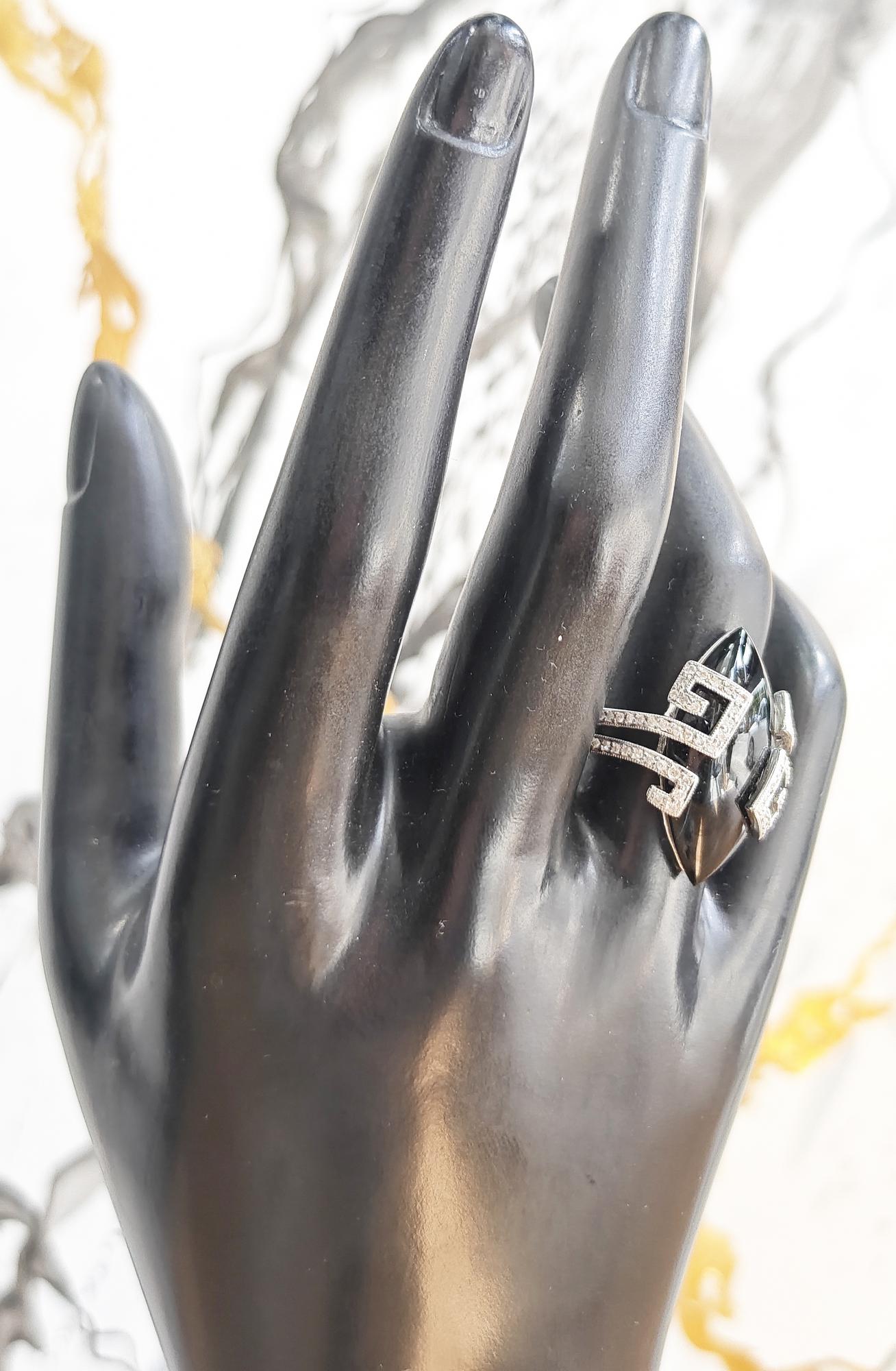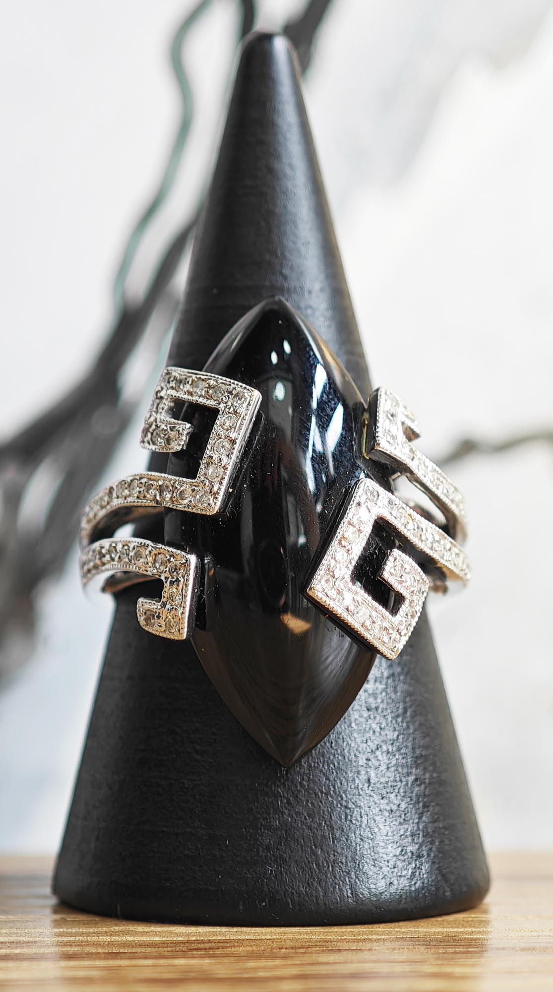 anello in oro bianco con onice e diamanti per ct. totali 0,34