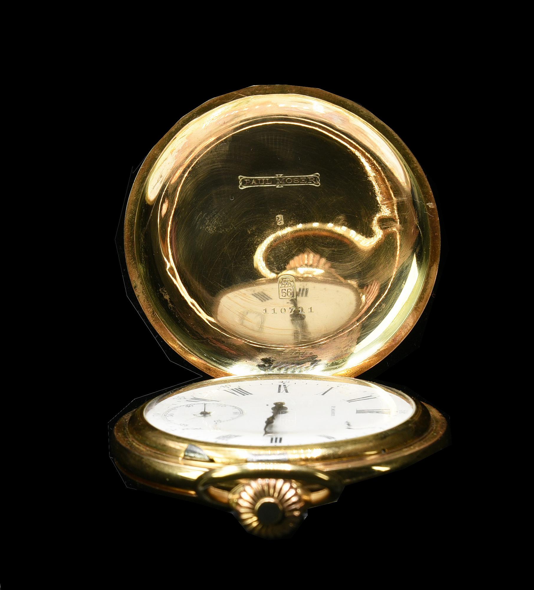 OROLOGIO DA TASCA IN ORO 14K, PAUL MOSER, REF. 110711, PRIMI DEL '900