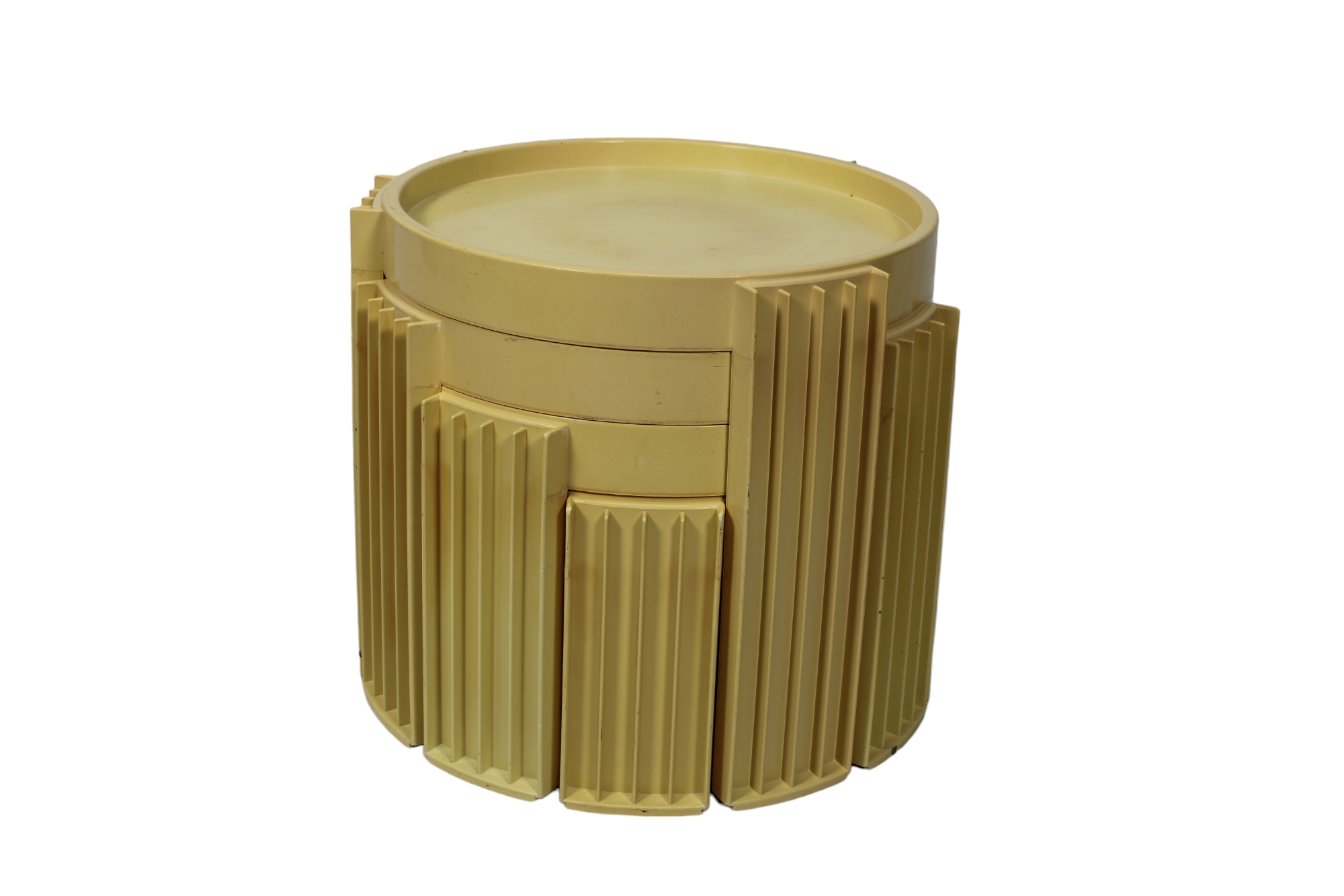 SET TAVOLINI MAREMA IMPILABILI DI GIANFRANCO FRATTINI PER CASSINA produzione italiana periodo stimato 1960 h cm 38 x 42