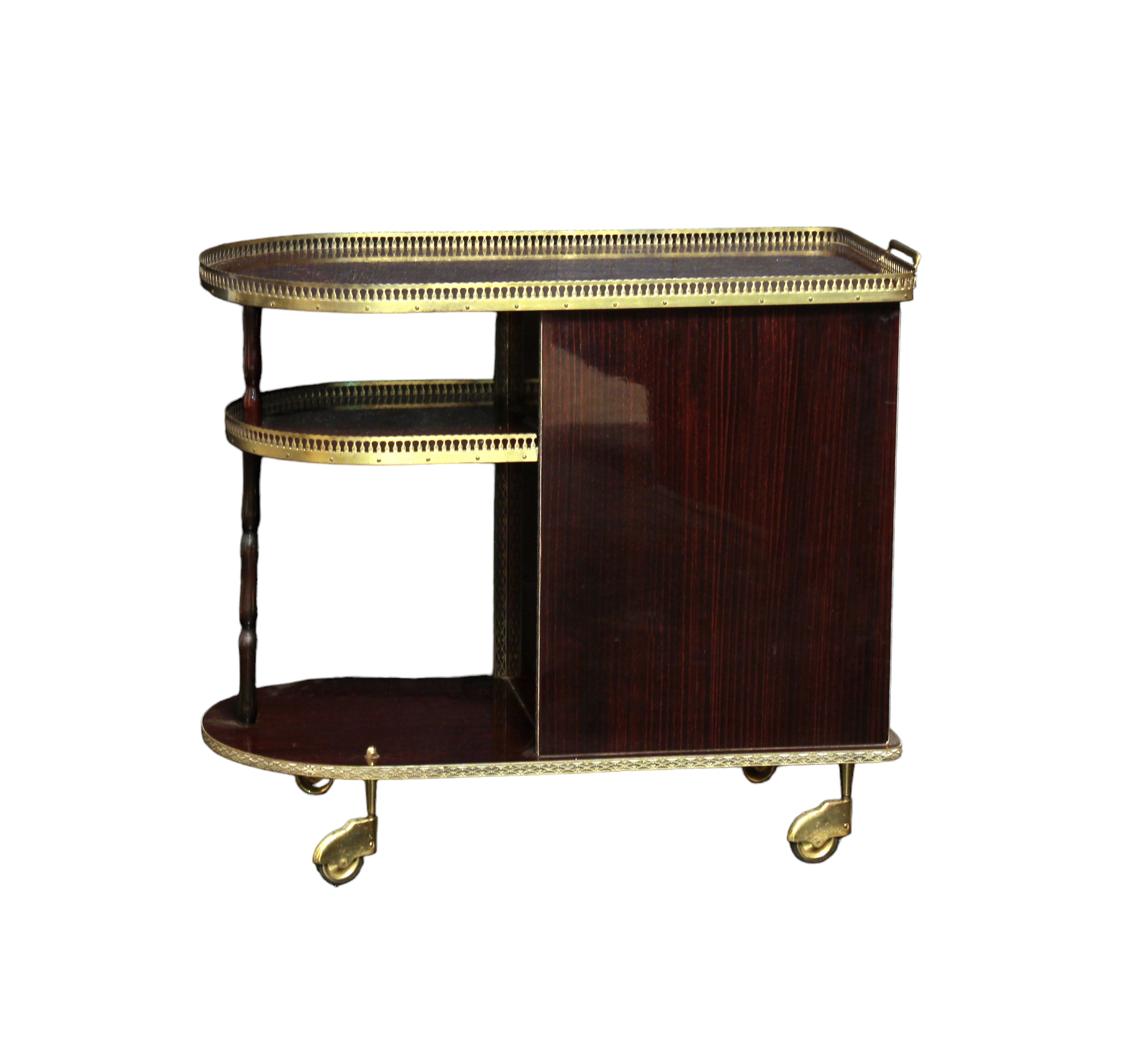 CARRELLO BAR ANNI 60 in legno con inserti lavorati in ottone produzione italiana h cm 72 x 86 x 43