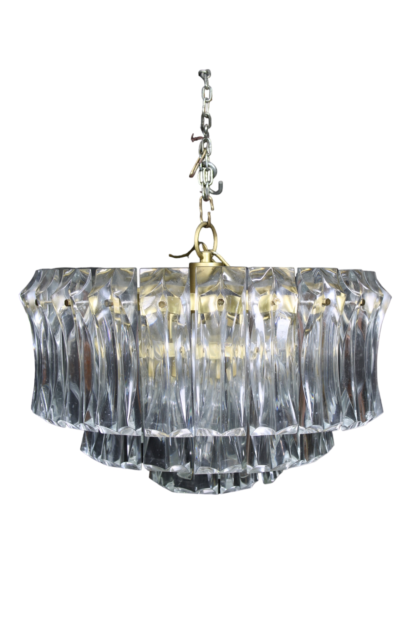 LAMPADARIO con elementi in vetro murano struttura in ottone produzione italiana periodo stimato anni 50 h cm 38 x 50