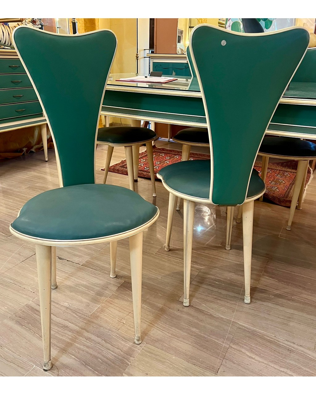 TAVOLO RETTANGOLARE CON 6 SEDIE produzione italiana anni 50 design Umberto Mascagni h cm 80 x 203 x 97 / h cm 37 x 45 x 45