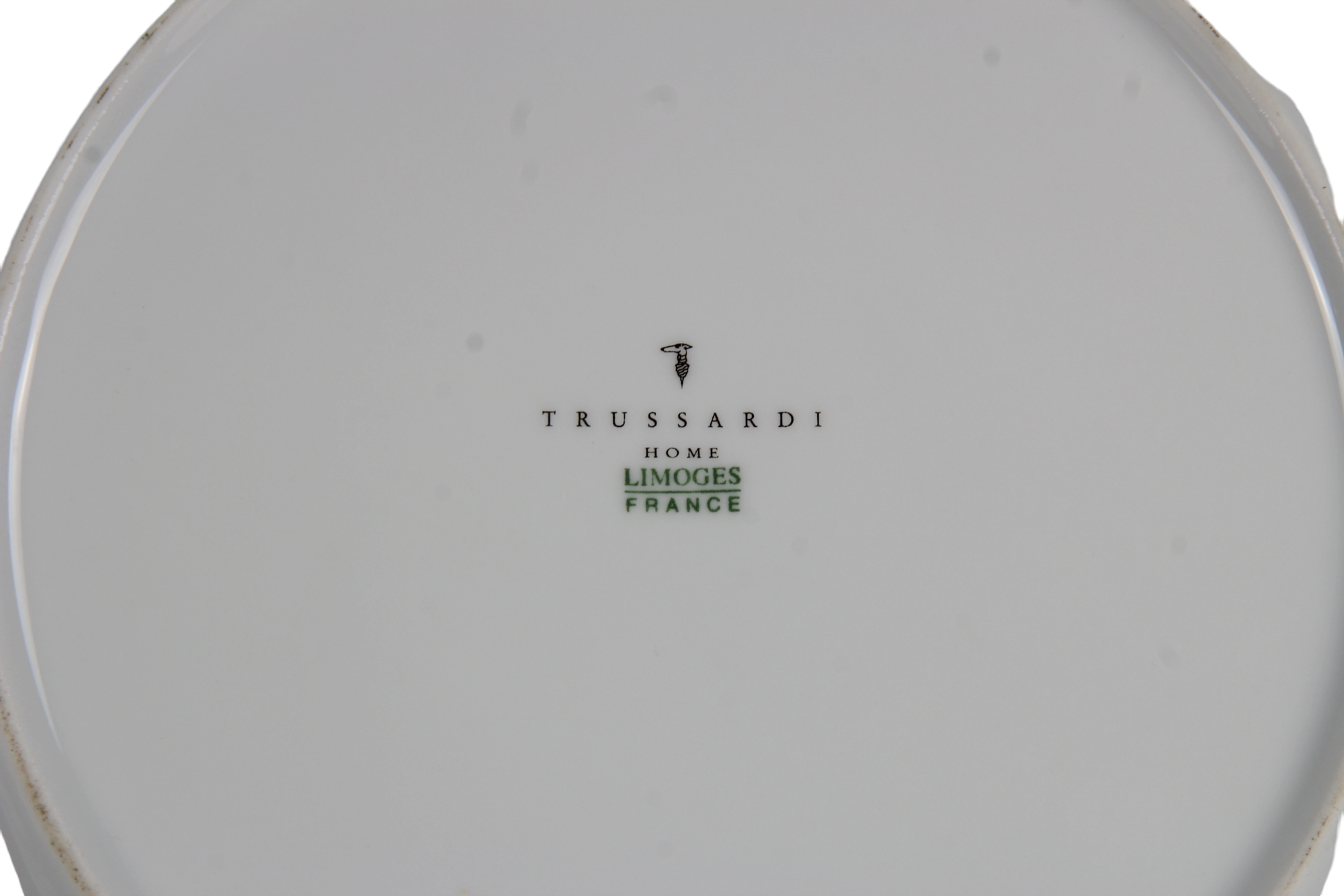 COPPIA PIATTI TRUSSARDI in porcellana raffiguranti levrieri produzione limoge Francia periodo stimato anni 90 Ø cm 32