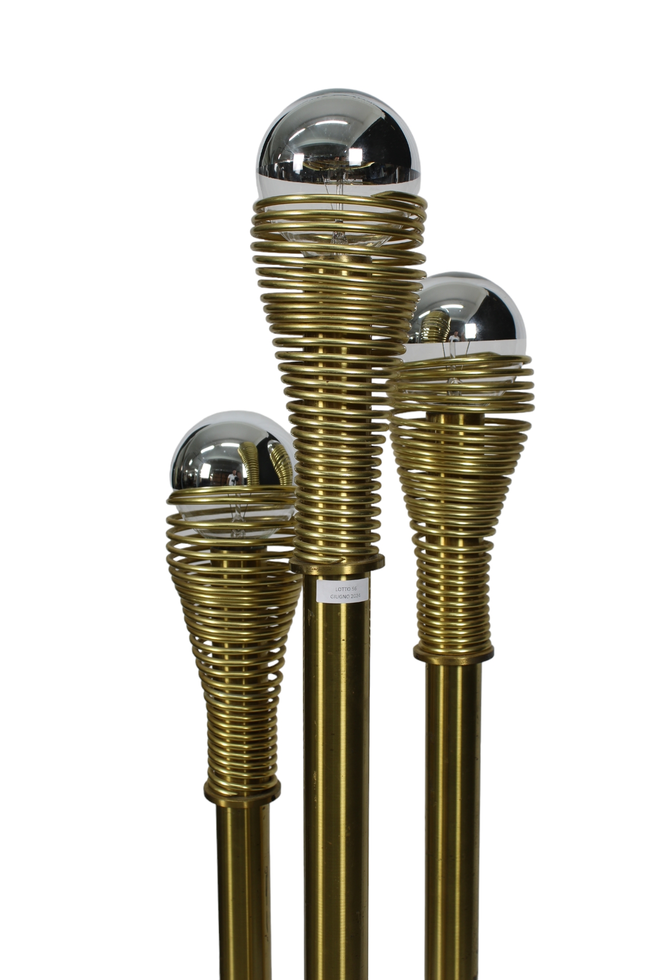 PIANTANA A 3 ELEMENTI in alluminio dorato con parti a forma di molla produzione italiana periodo stimato anni 70 h cm 135 x 25