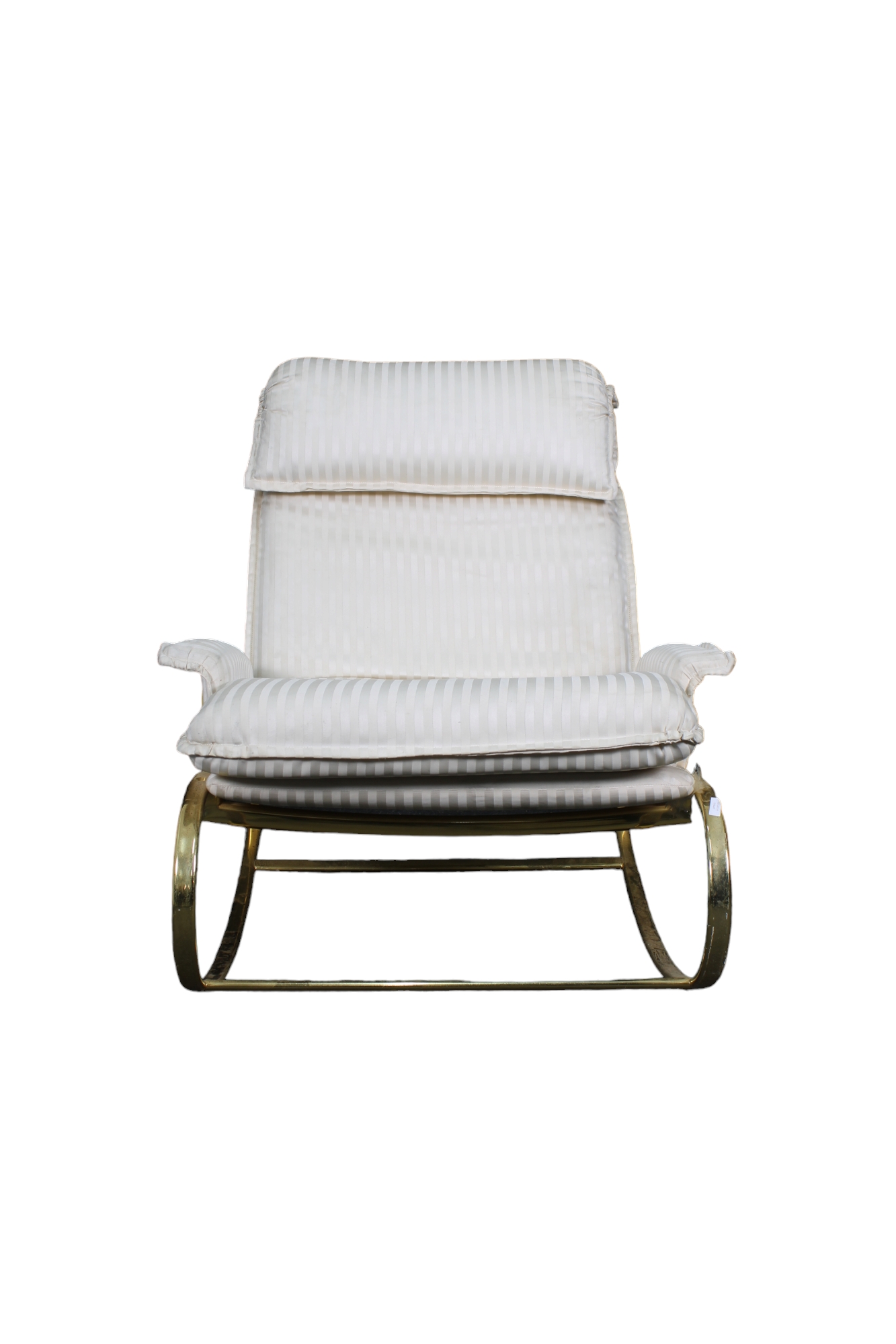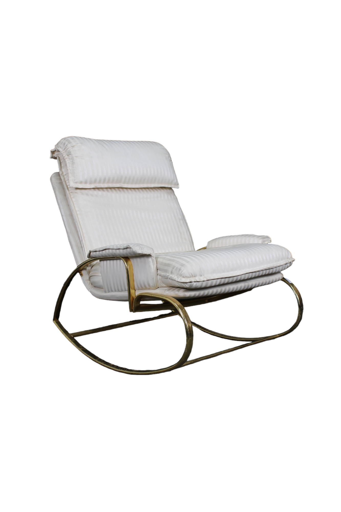 SEDIA A DONDOLO anni 70 in alluminio dorato produzione italiana h cm 94 x 87 x 75