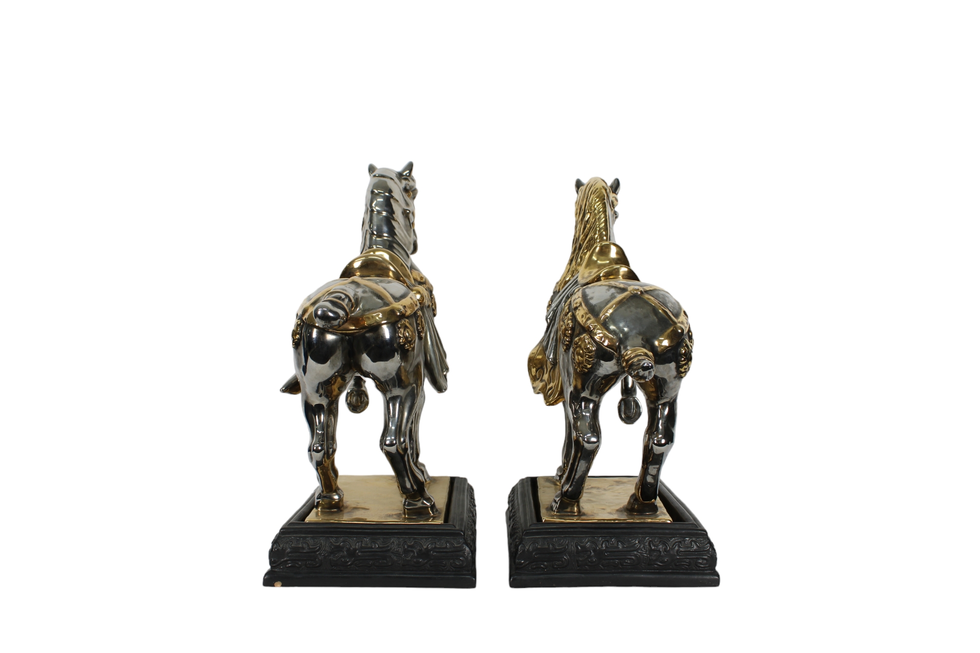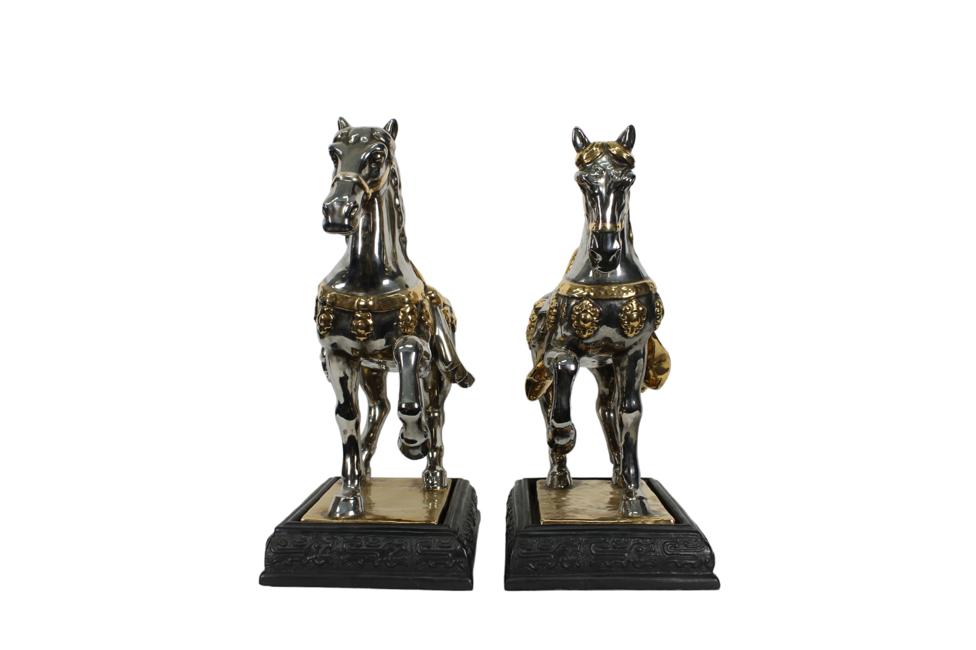 COPPIA DI SCULTURE RAFF CAVALLI in metallo argentato e dorato h cm 45 x 38 x 20,5