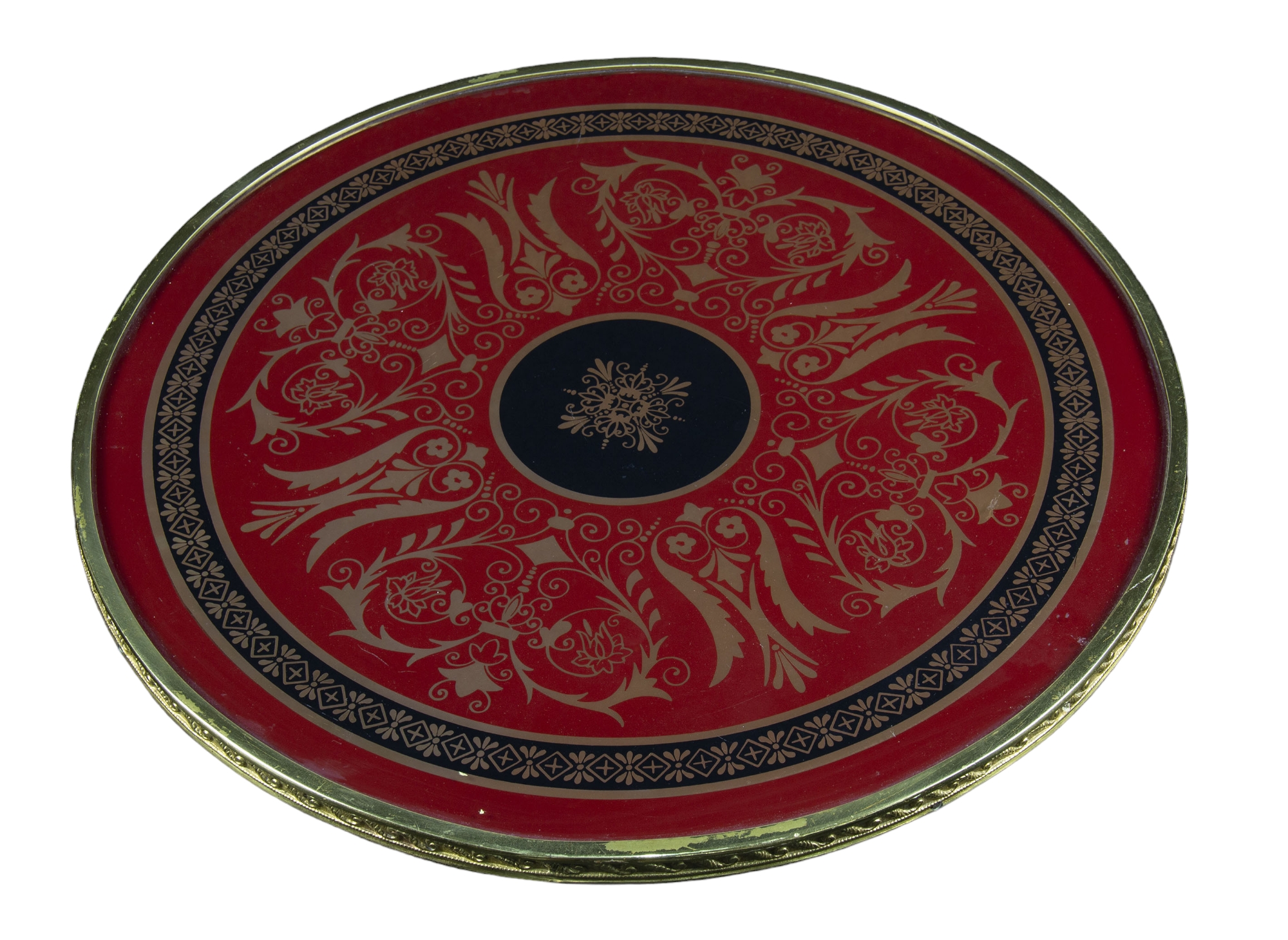 TAVOLINO DA SALOTTO ANNI 60 in vetro lavorato, ottone e piano in vetro decorato h cm 58 x 45