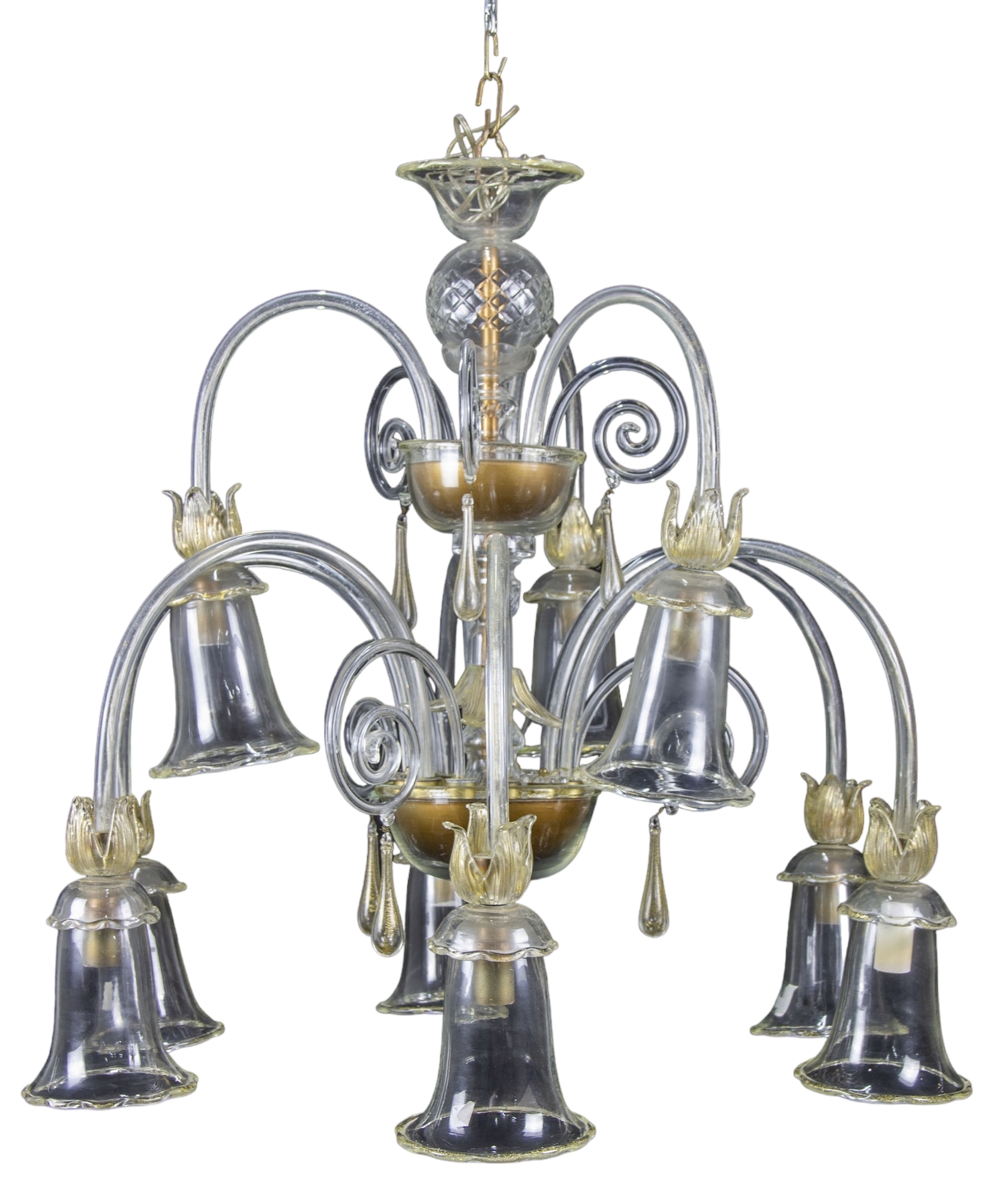 GRANDE LAMPADARIO in vetro murano 9 luci produzione italiana periodo stimato anni 70 h cm 69 x 76