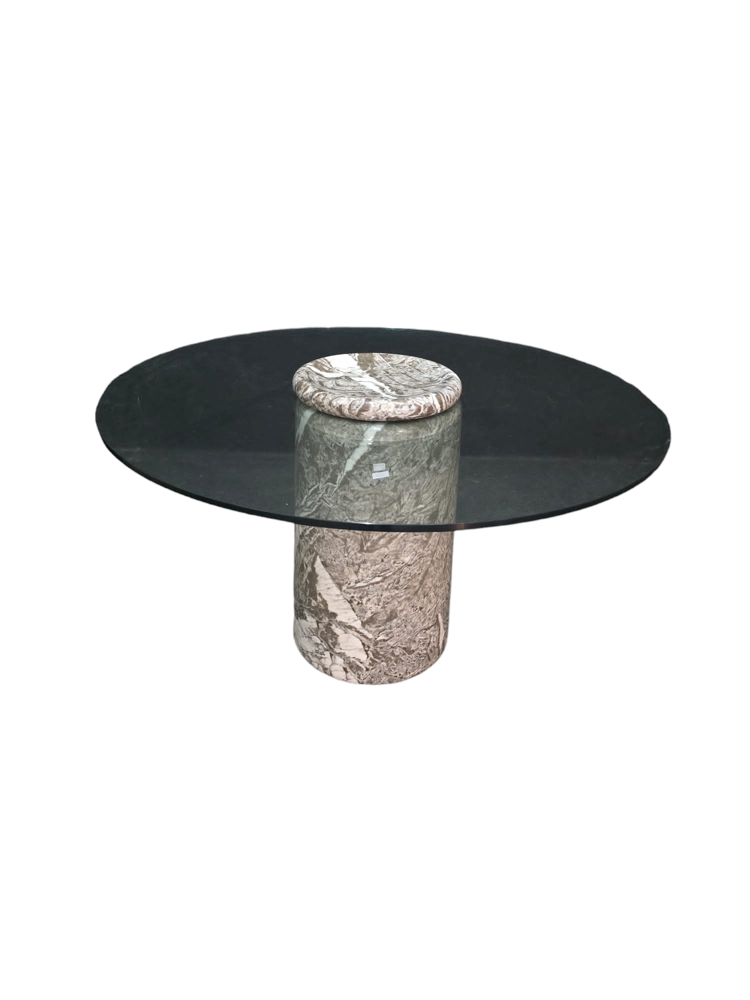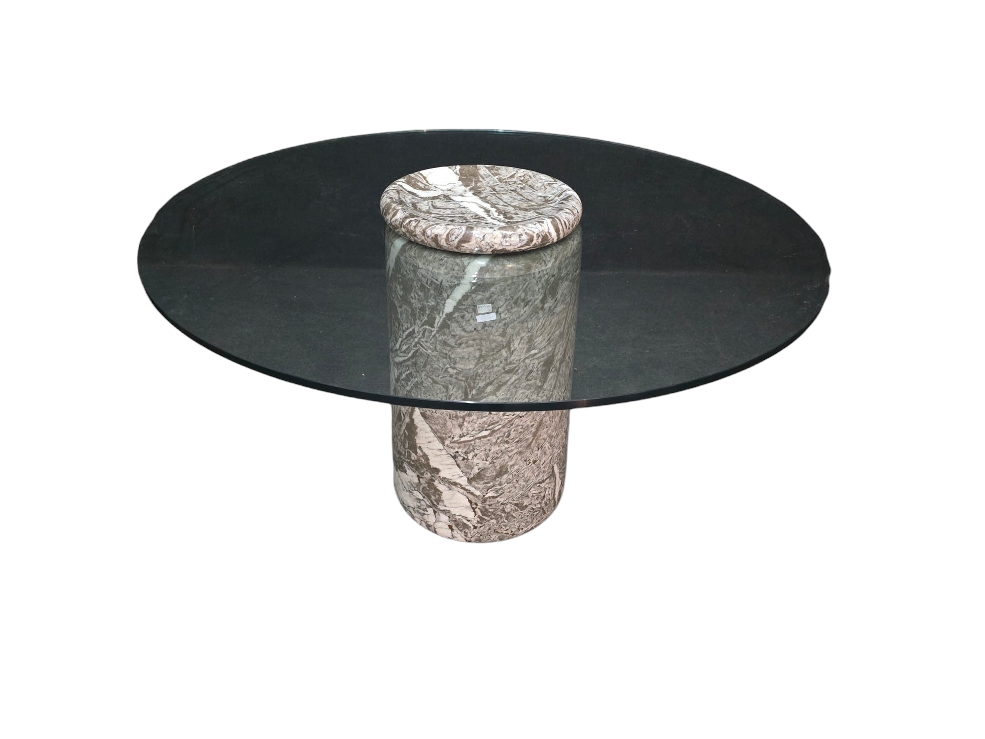 TAVOLO DA PRANZO DI ANGELO MANGIAROTTI per sorgente modello castore produzione italiana periodo stimato anni 70 base in marmo e piano in vetro . h cm 80 x 130