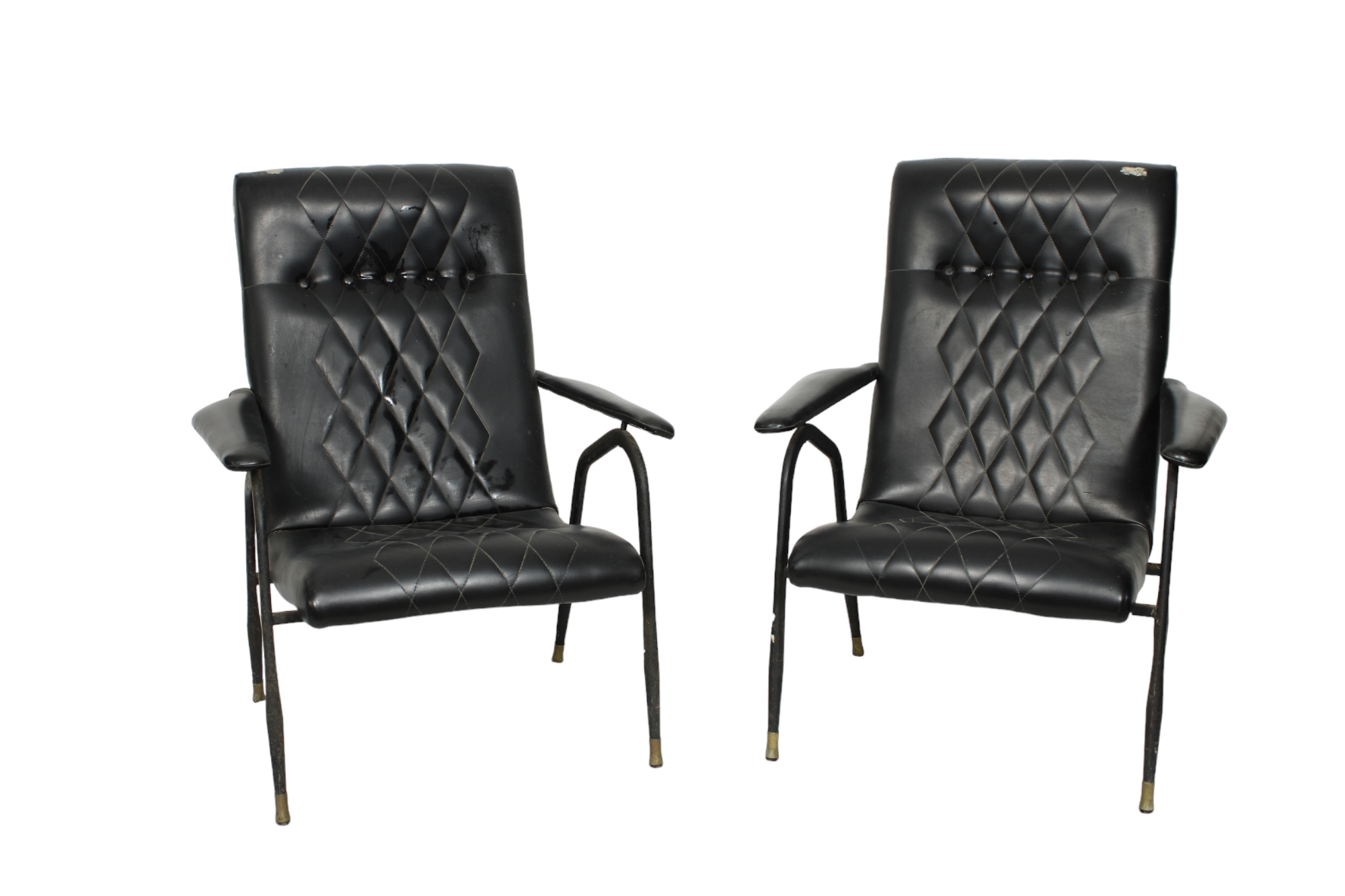 COPPIA DI POLTRONE in eco-pelle e struttura in metallo nere produzione italiana anni 60 h cm 89 x 70 x 75