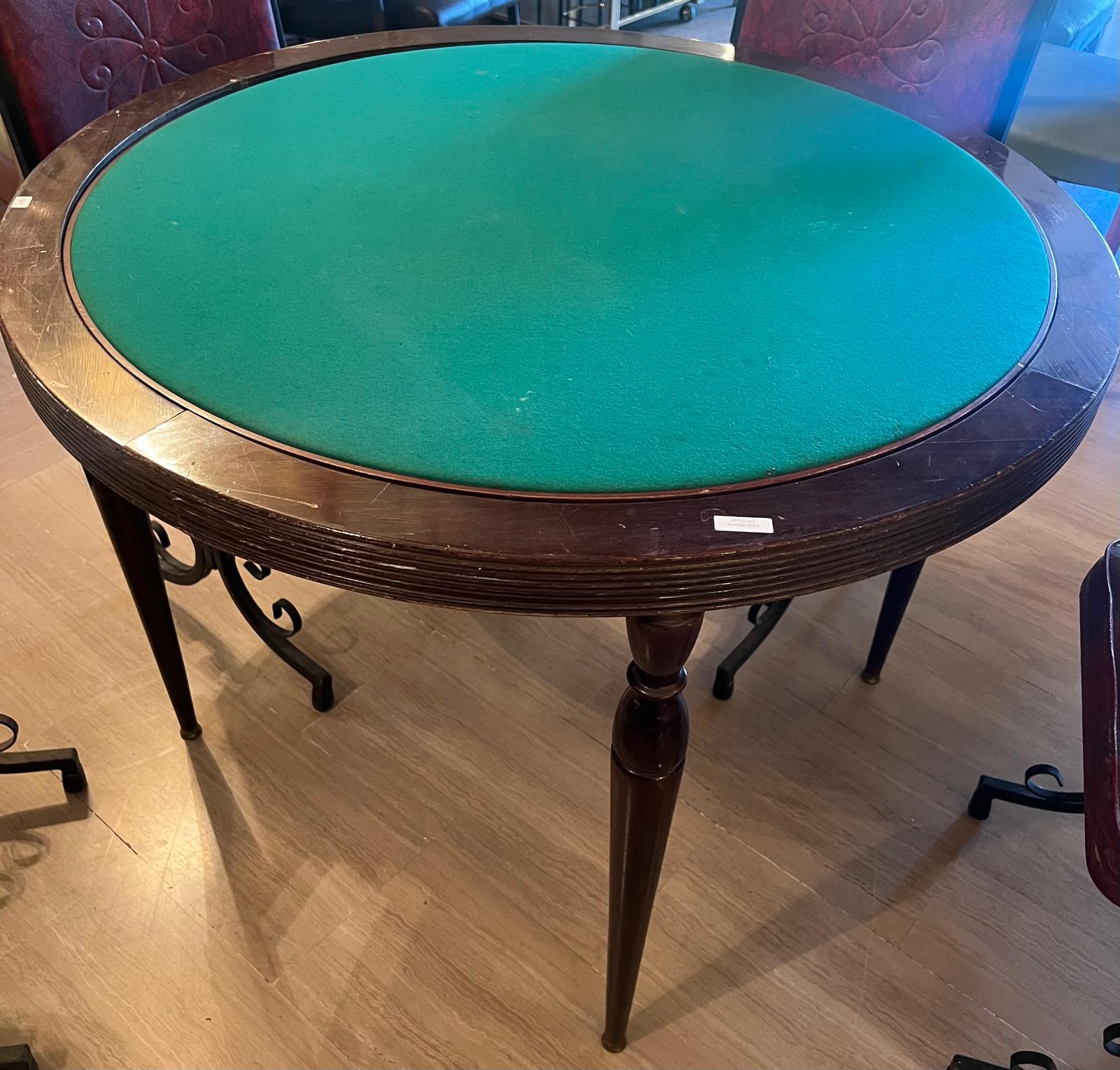 TAVOLO DA GIOCO in legno massello con piano in radica e panno da gioco produzione italiana periodo stimato anni 50 h cm 73 x 100