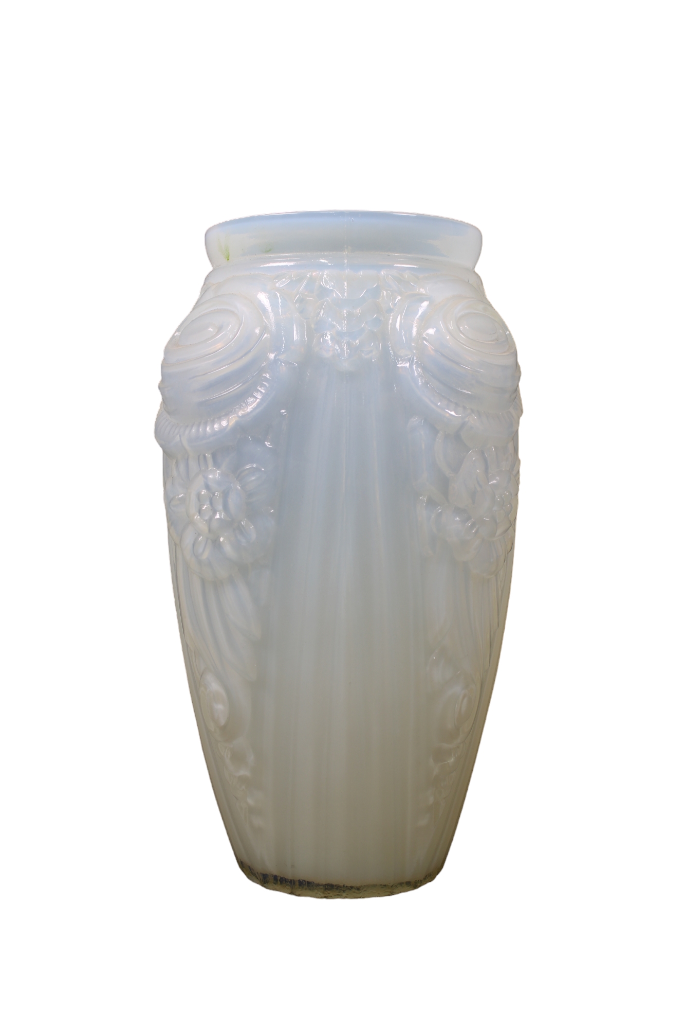 VASO in vetro opalescente lavorato produzione Francia art deco' periodo anni 40/50 h cm 30,5 x 15