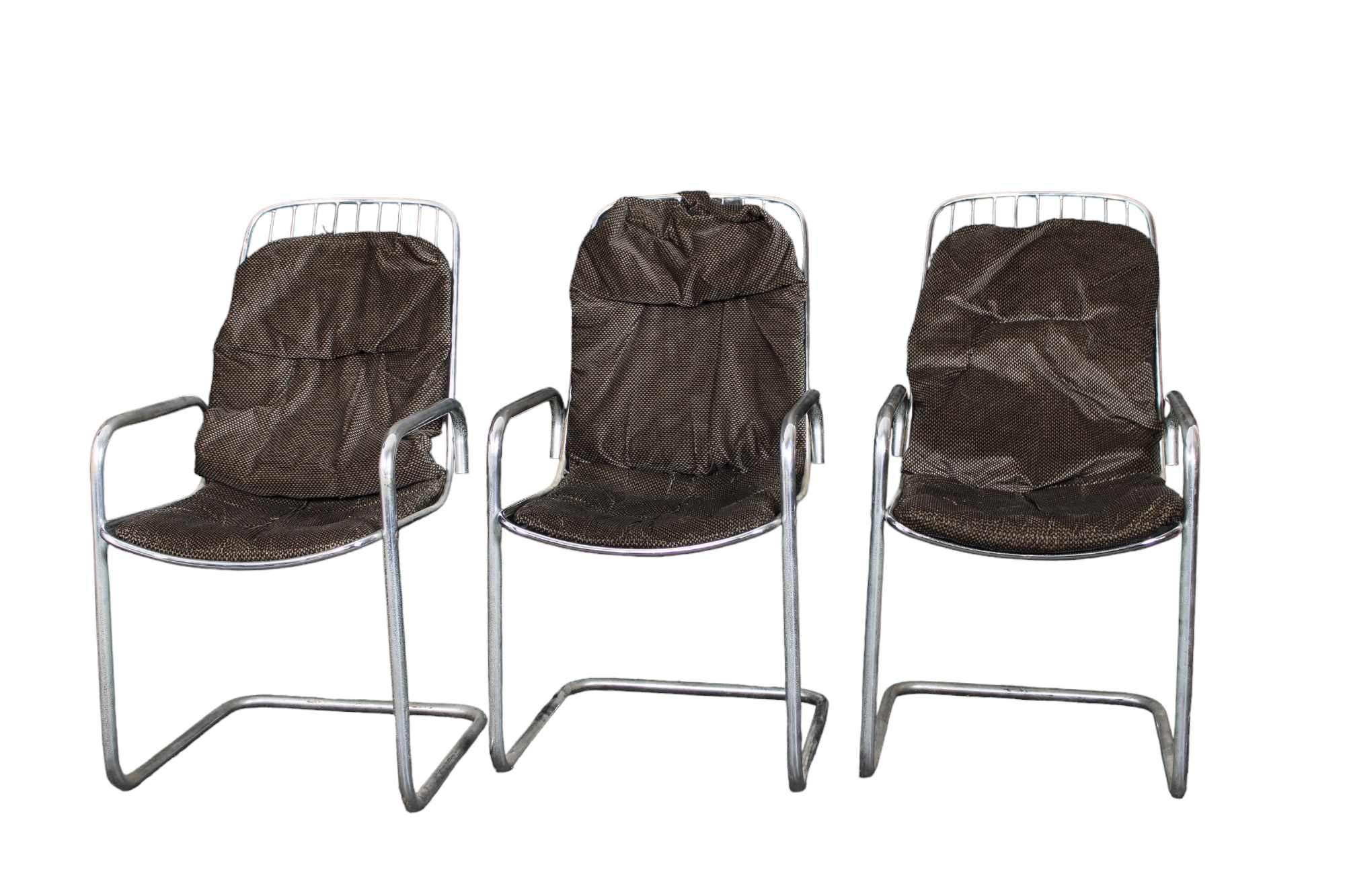 SET DI 3 POLTRONE in acciaio con sedute in velluto marrone periodo anni 70 produzione italiana h cm 98 x 58 x 50